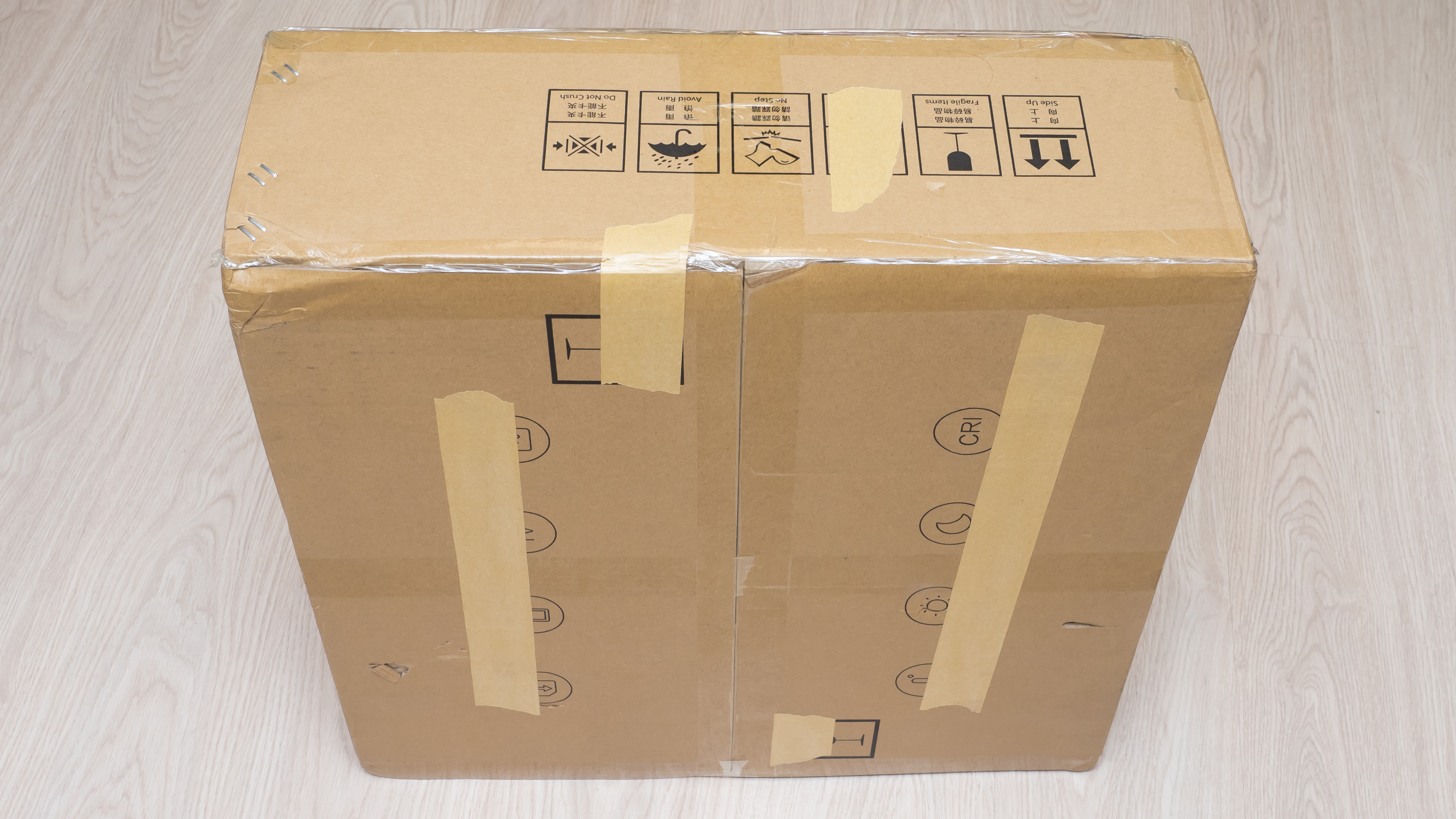 Поставляется люстра в большой картонной коробке размером 57 * 57 * 21 см, весом более 5 кг, доставка платная — например в Украину стоила 7 долларов. Упаковано все грамотно, пенопластовые уголки удерживают лампу в центре коробки, создавая воздушные карманы, предотвращающие от ударов.