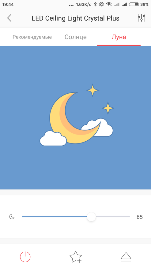 Что касается самого светильника, то учитывая цену вполне сопоставимую с стоимостью Yeelight 650 — я бы рекомендовал к покупке именно ее и с звёздным плафоном. Отсутствие функции Bluetooth шлюза, думаю поправят в дальнейших прошивках, такое уже было, ведь главное — интерфейс, у нее есть.
