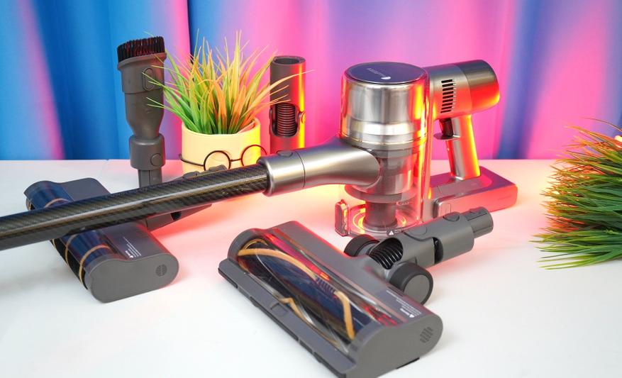 Еще один вариант может поспорить с Dreame R20 как по мощности, так и по уровню комплектации. Речь идет про флагманский Dreame Т30 — популярную модель прошлый лет, которая не теряет своей актуальности и сейчас. Используется практически такой же бесщеточный двигатель (550 Вт BLDC) с мощностью до 27 кПа. Батарея уже не 7S, а на 8 ячеек (8S). Время работы до 90 минут в экономичном режиме. Есть гибкий шланг и сгибаемый адаптер, предусмотрена подсветка основной и узкой насадок, а также карбоновая удлинительная трубка. По ссылке доступен мой обзор с тестами Dreame Т30.