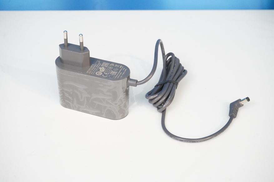 Но из-за съемного форм-фактора батареи имеется возможность использовать дополнительную батарею, которую можно приобрести отдельно — тогда не потребуется прерывать уборку на подзарядку. А вот зарядка происходит с помощью сетевого адаптера — компактного блока питания с круглым «джеком». Подключаться этот источник может как напрямую к корпусу пылесоса, так и к настенному креплению.
