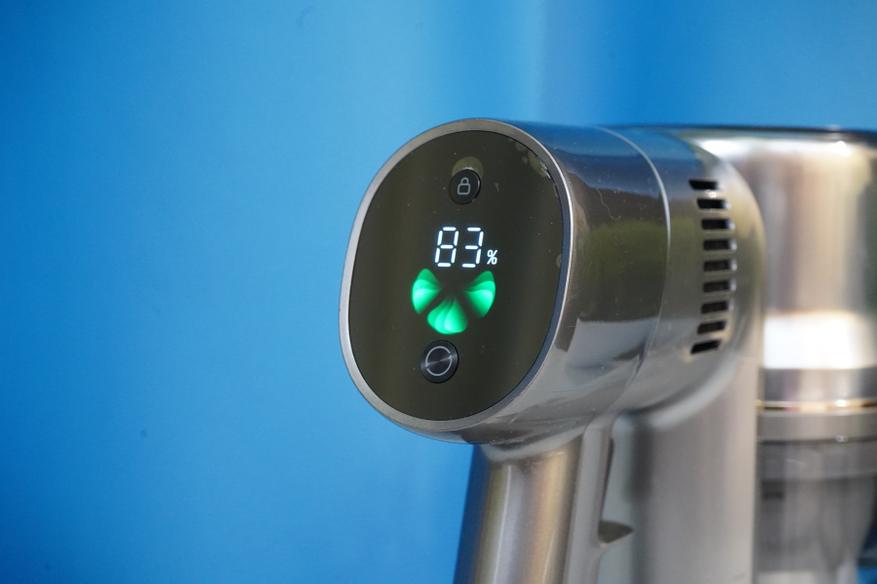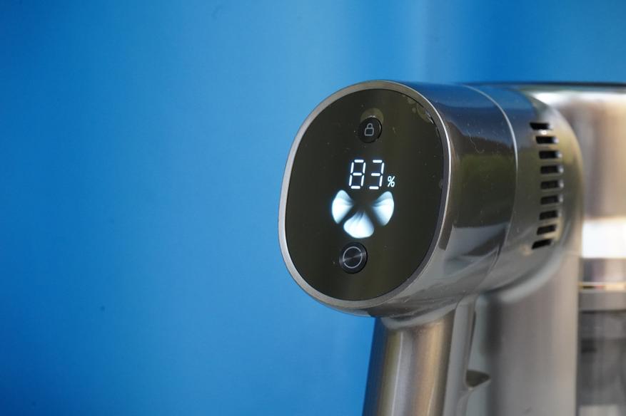 Управление в этой модели простое — предусмотрен небольшой дисплей с цветной индикацией режима работы, с указанием остатка заряда батареи, а также с двумя кнопками, позволяющими как выбрать один из режимов работы: автоматический и турбо.