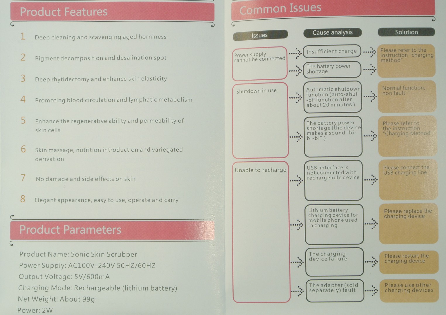 И хотя производители пишут, что данный тип прибора подходит и для проблемной кожи, все же изначально рекомендую предварительно проконсультироваться у дерматолога, перед использованием. В комплект входит сам скрабер, инструкция и кабель зарядки с microUSB разъемом.