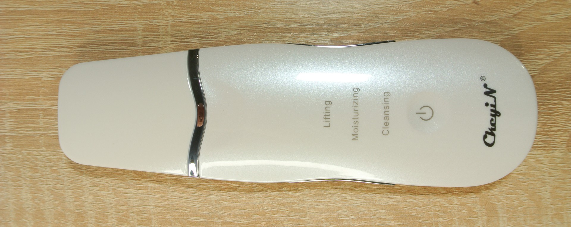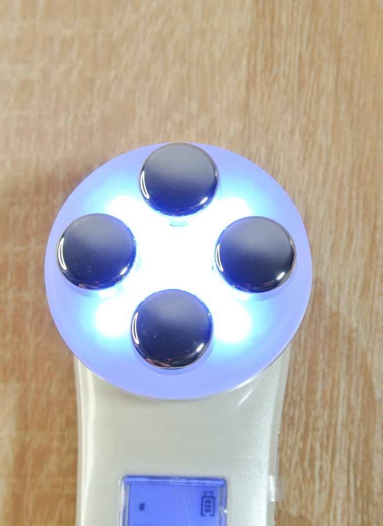 Основные клавиши управления находятся на лицевой части ручки. Самая верхняя кнопка включения и выключения прибора. Под ней расположилось три клавиши, каждая из которых отвечает за активизацию нужного вам режима работы. Тут у нас активация режима электростимуляции EMS, активация ИК света и активация ультразвукового режима (двух степеней интенсивности ).