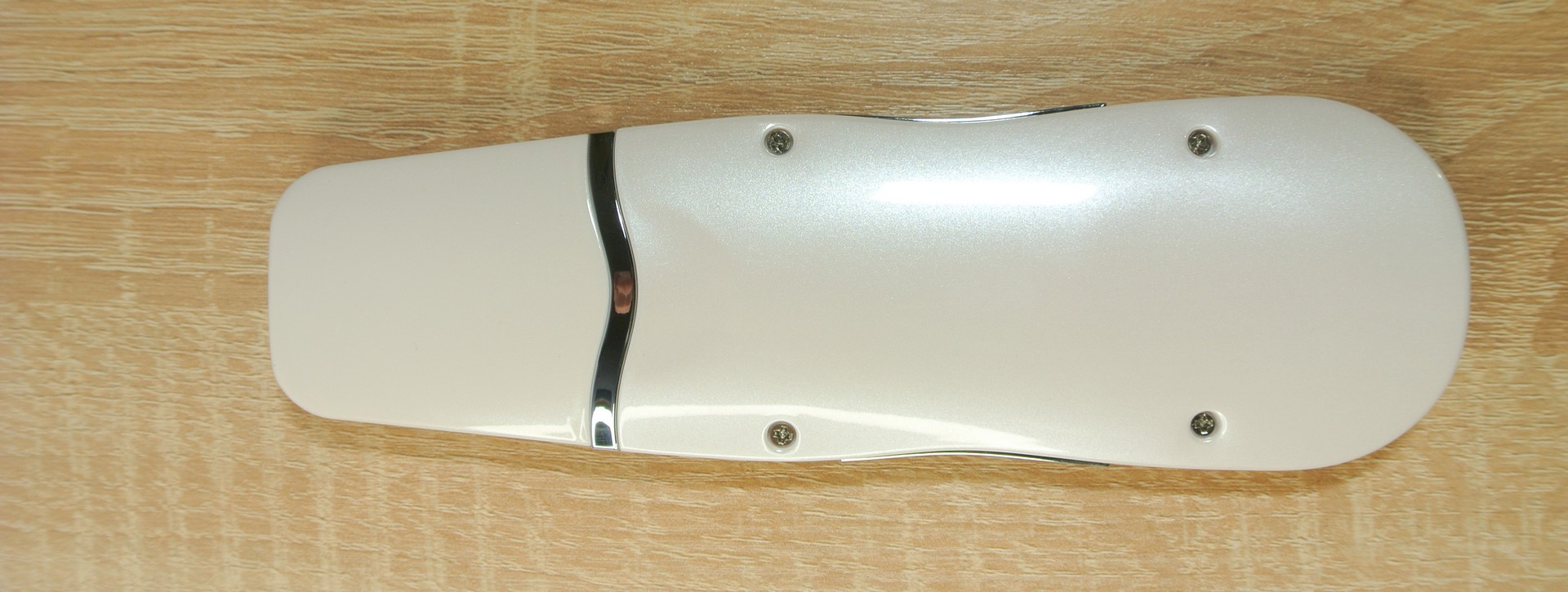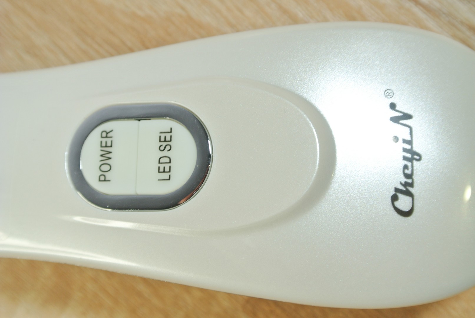 Устройство также изготовлено из молочно-белого глянцевого пластика, как и предыдущее. Прибор имеет удобную форму и хорошо лежит в руке. По середине корпуса расположилось 2 клавиши управления POWER и LED SELECT. Клавиша POWER включает прибор, а также меняет интенсивность воздействия, всего 5 уровней интенсивности. КлавишаLED SELECT меняет режимы света, а также полностью отключает свет.