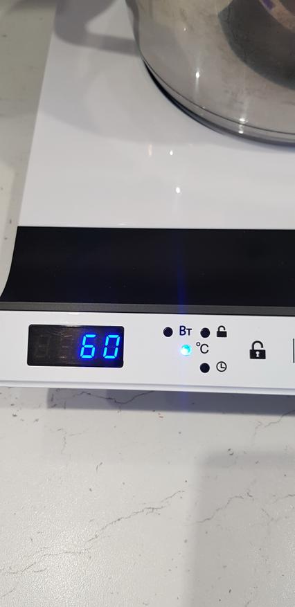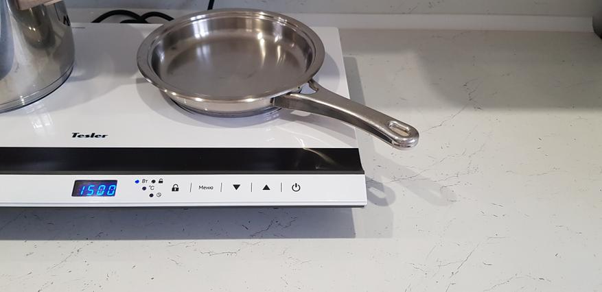 Конечно же, было интересно сравнить индукцию с газовой панелью. И мы провели тест, в котором следили за временем закипания воды в посуде. В молочнике с диаметром дна всего 10 см (хотя рекомендуется от 16 см) и объемом воды – 800 мл на средней мощности 1600 Вт, вода закипела на 3-ей минуте; при 2000 Вт время закипания — 2 мин. Для сравнения, установив эту емкость на самую крупную газовую конфорку, наблюдали кипящую воду через 8 мин 40 сек.