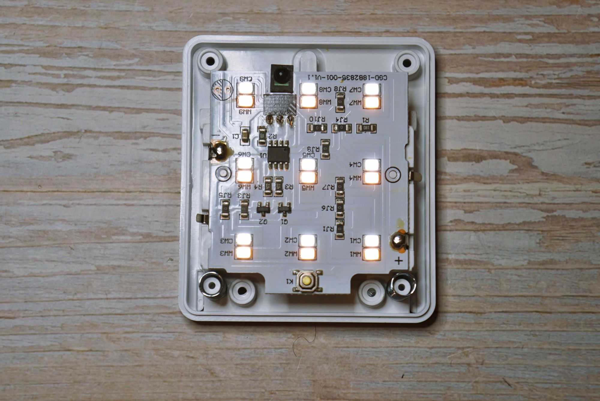 На минимальной яркости света отчетливо видно, что работают разные светодиоды:
