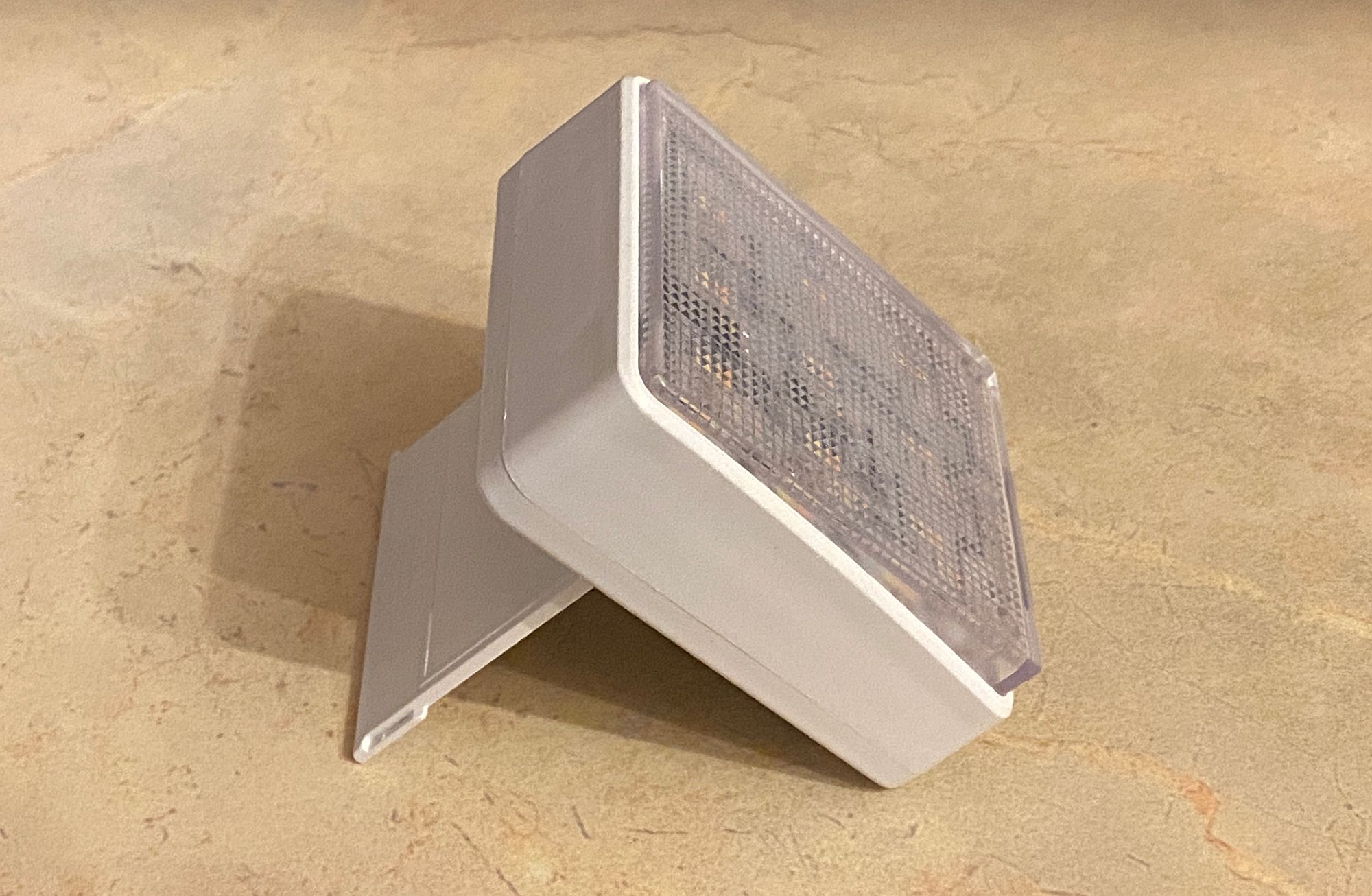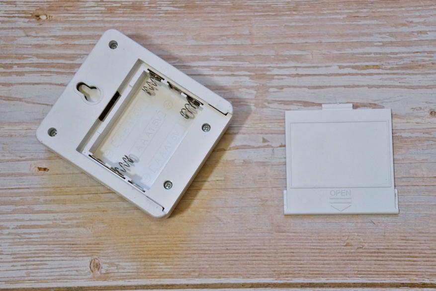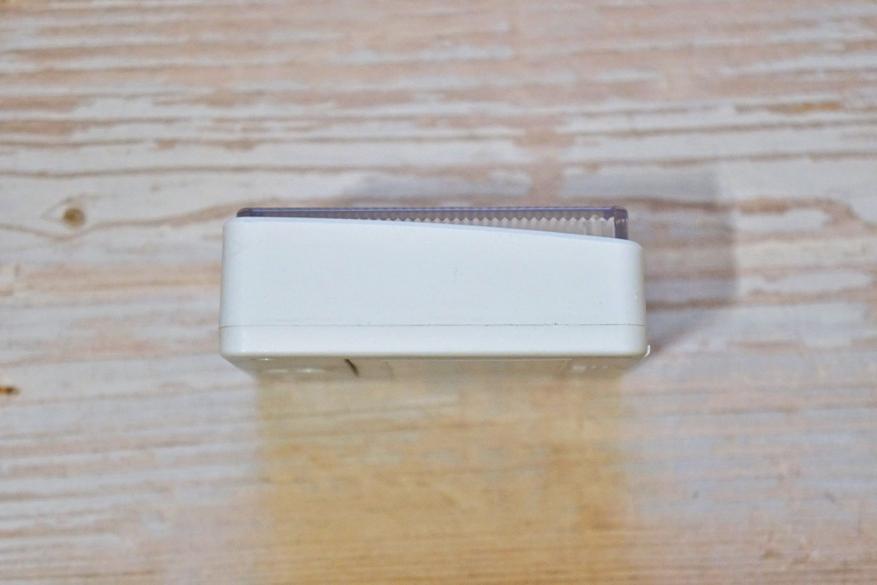 Крышку можно зафиксировать в перпендикулярном корпусу положении, тогда устройство можно установить под наклоном. Однако, в этом случае батарейки оказываются не прикрыты крышкой: