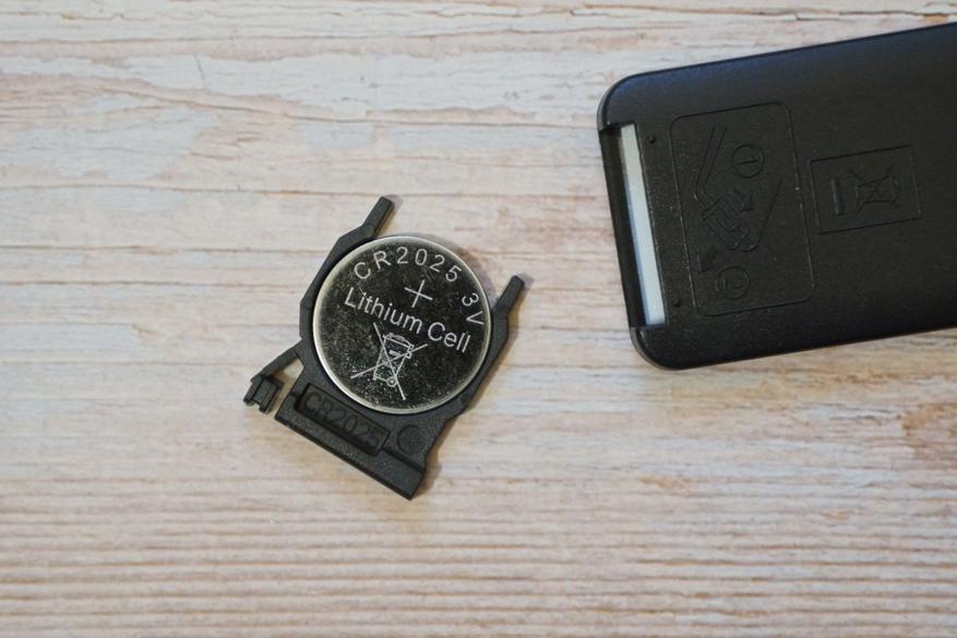 Питается пульт от батарейки CR2032 (в комплекте):