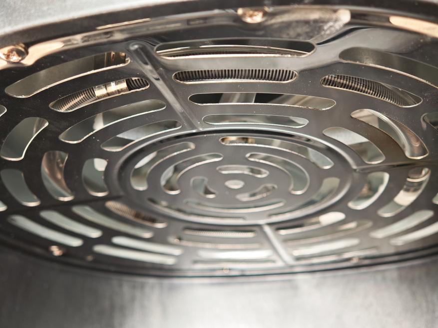 Тэн только один — в верхней части. Он представляет из себя карбоновый нагреватель, прикрытый вентилятором для обдува. Производитель обещает равномерный нагрев по всему объему чаши, как дела обстоят на самом деле — расскажу дальше.