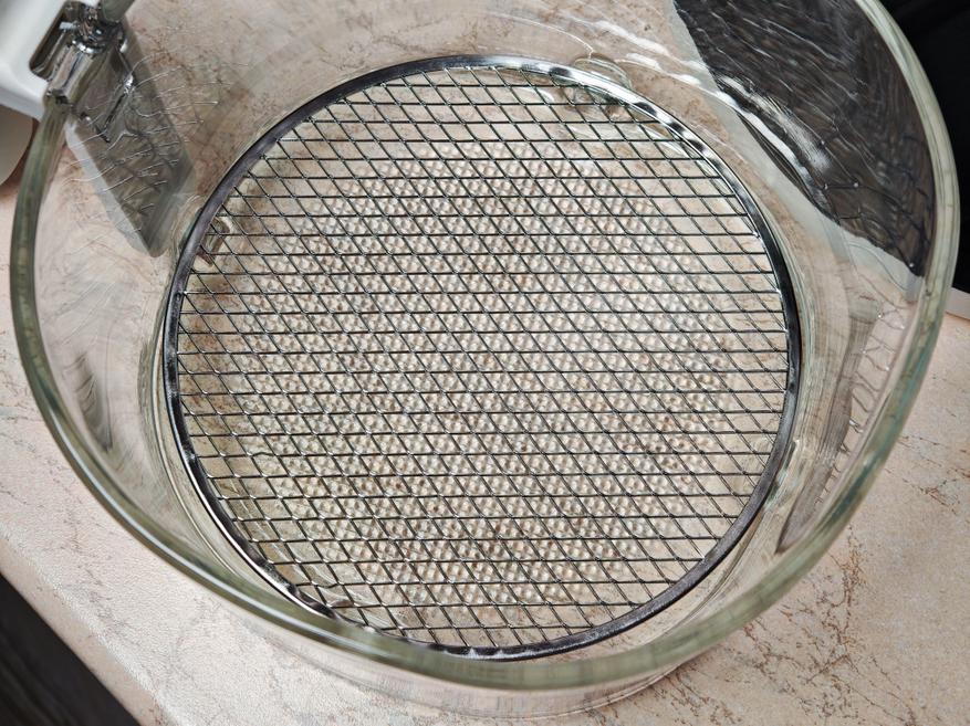 Внутри чаши находятся пазы для установки комплектной решетки, делать это не всегда удобно, иногда она попадает мимо и приходится ее поправлять. Также, не всегда удобно доставать готовое блюдо: картошку фри, например, хочется высыпать в тарелку, а не доставать ее щипцами. Если это сделать — решетка предательски выпадет вместе со снеком, поэтому каждый раз ее приходится придерживать. Благо, можно купить бумагу для аэрогриля, она сильно упрощают жизнь.