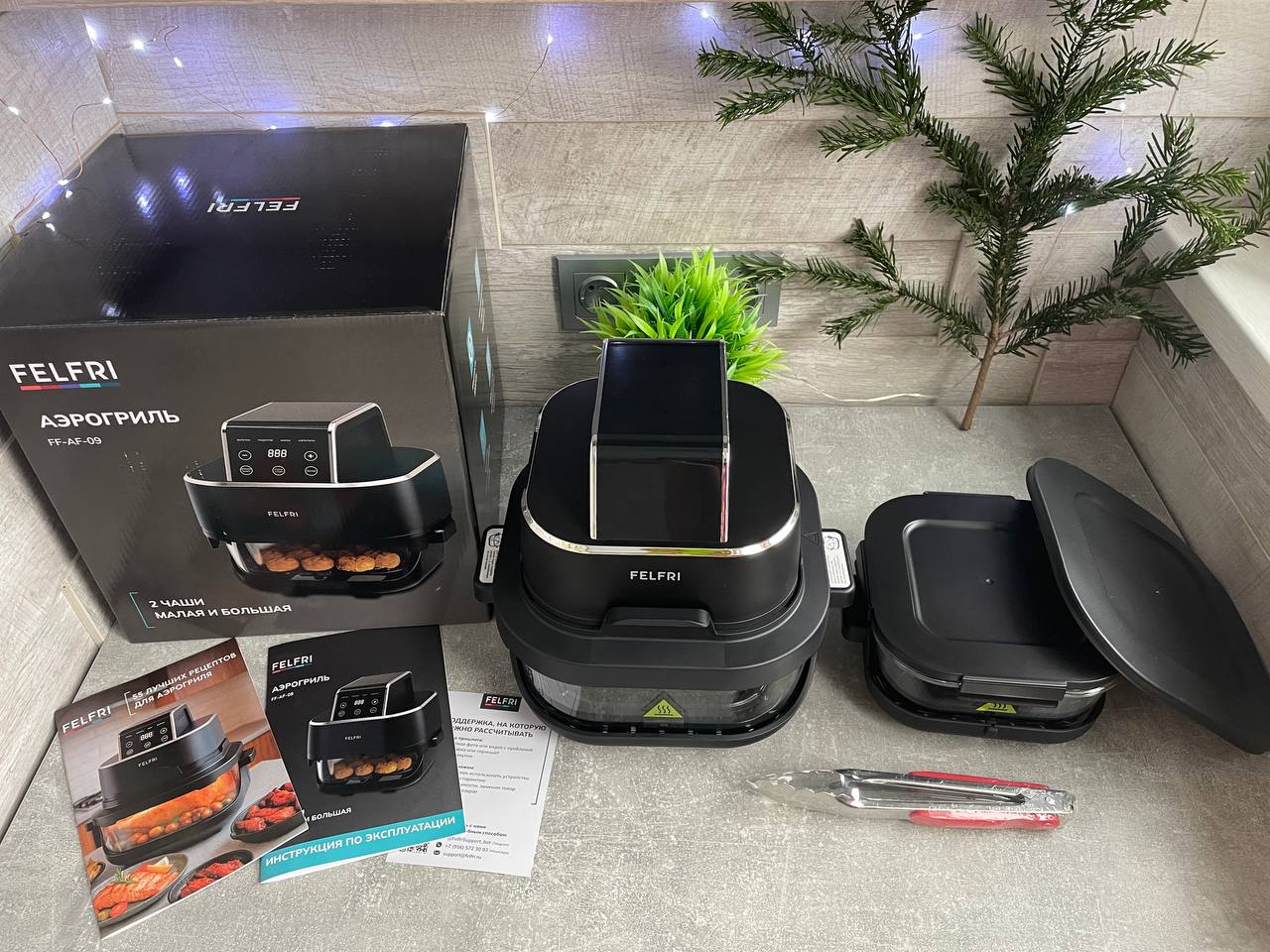Обзор аэрогриля Felfri FF-AF-09 — здоровая еда без капли масла. С двумя чашами для большой и маленькой порции.