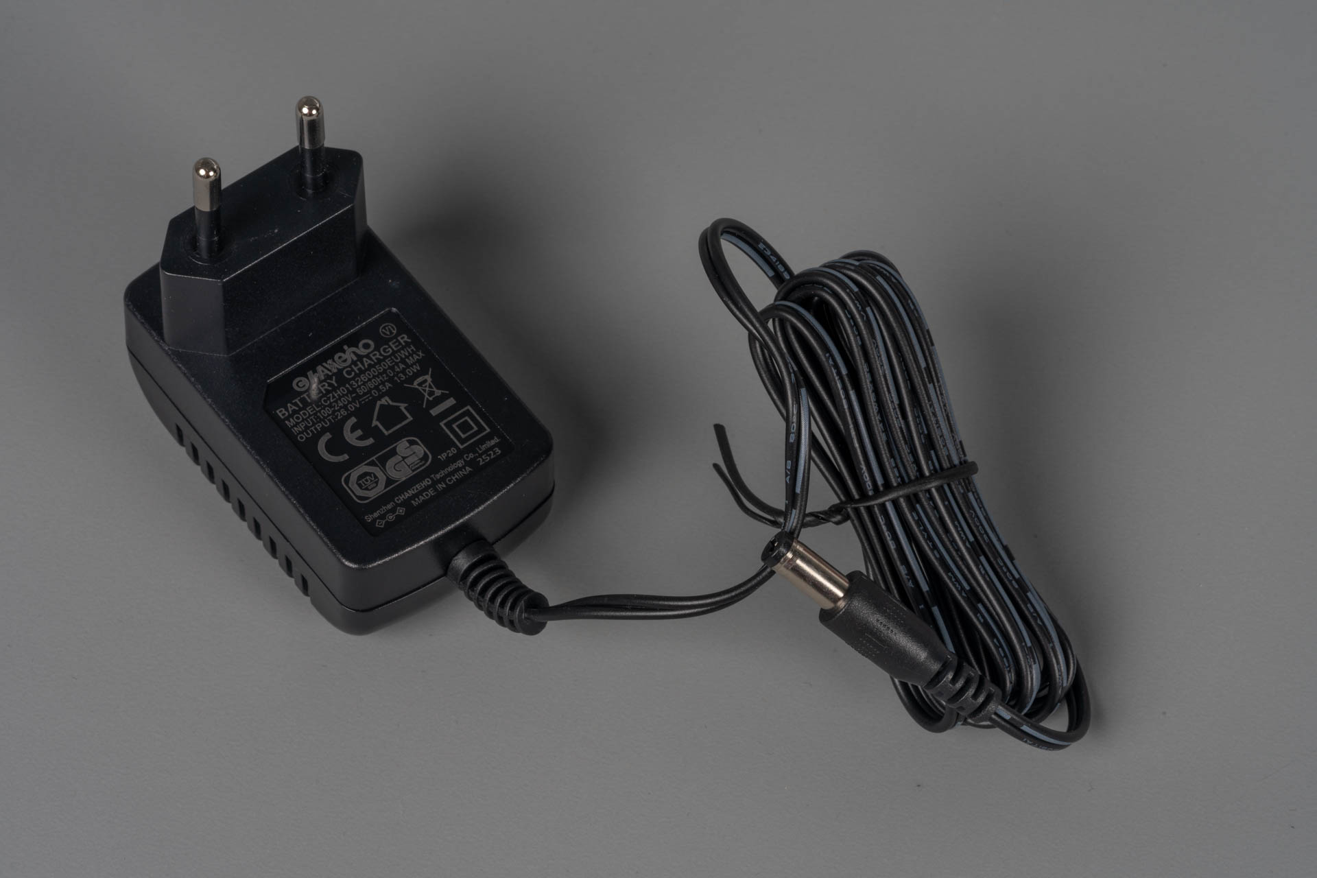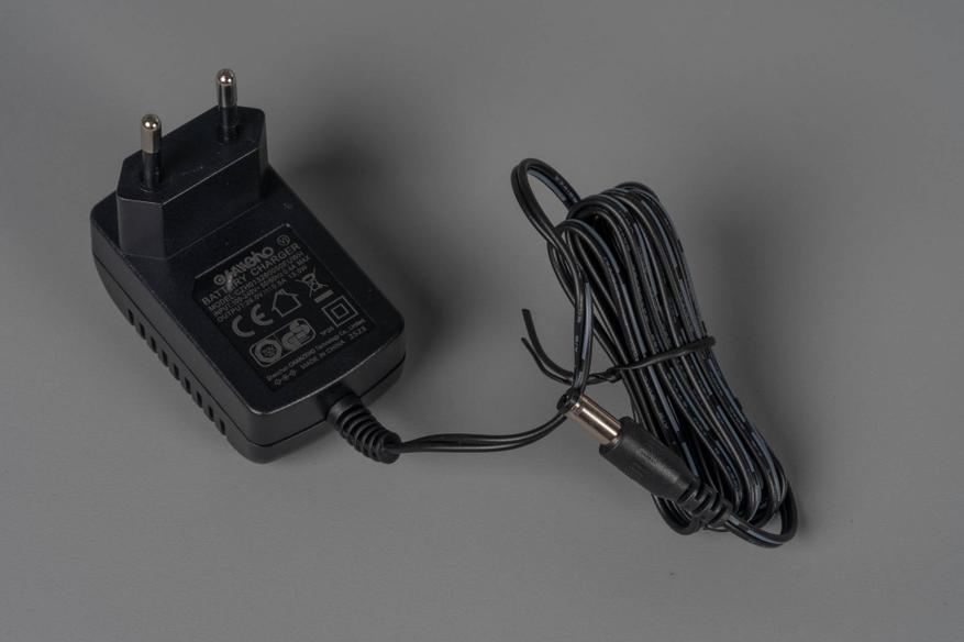 Зарядка осуществляется через комплектный адаптер двумя способами: напрямую к съемному аккумуляторному блоку или через порт на задней панели основного корпуса при установленном аккумуляторе.