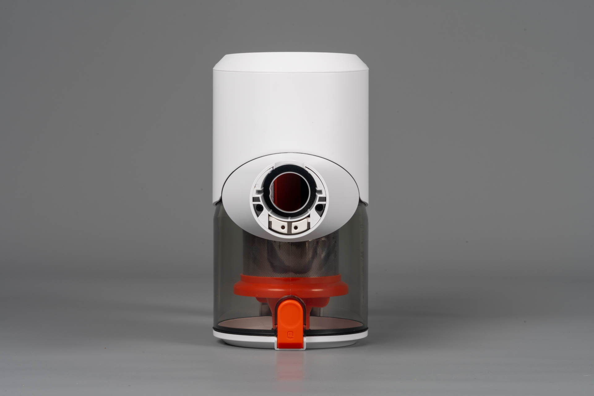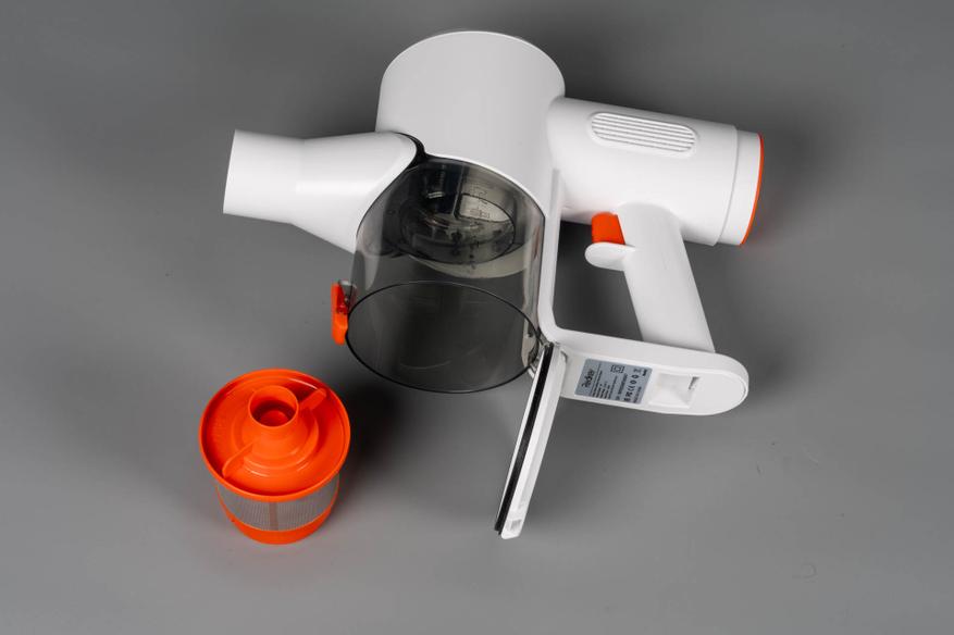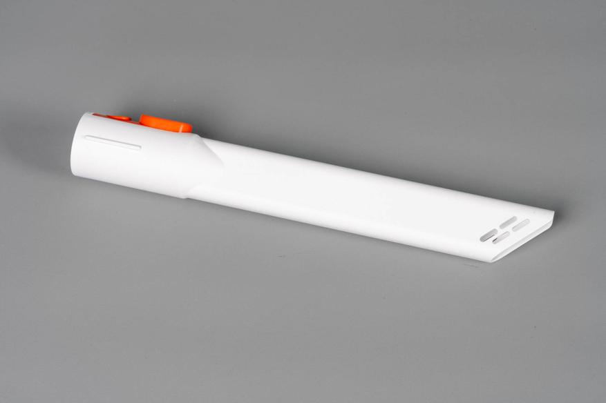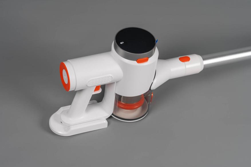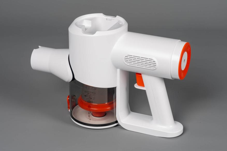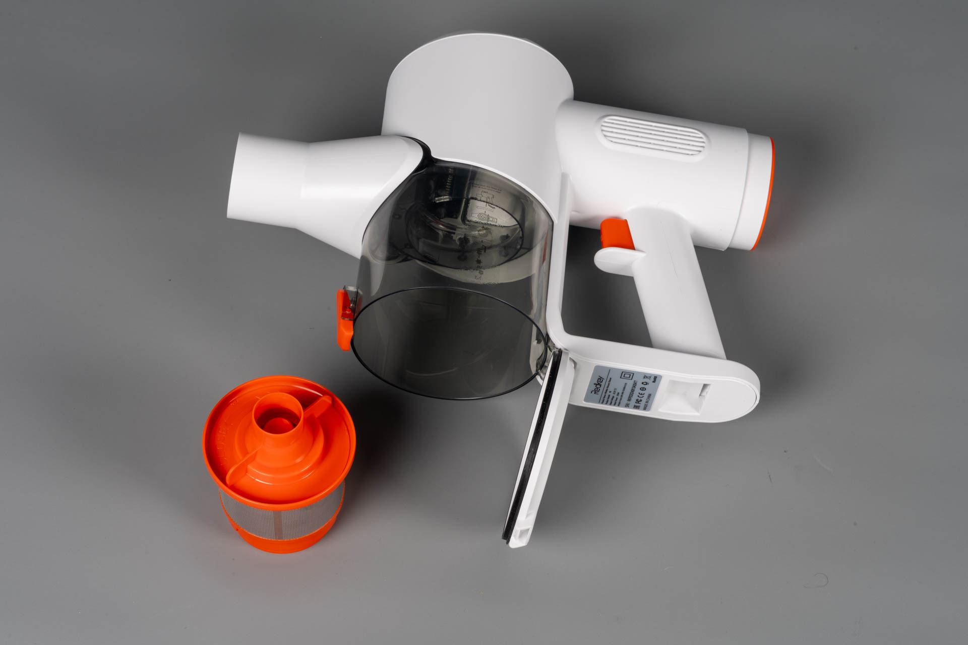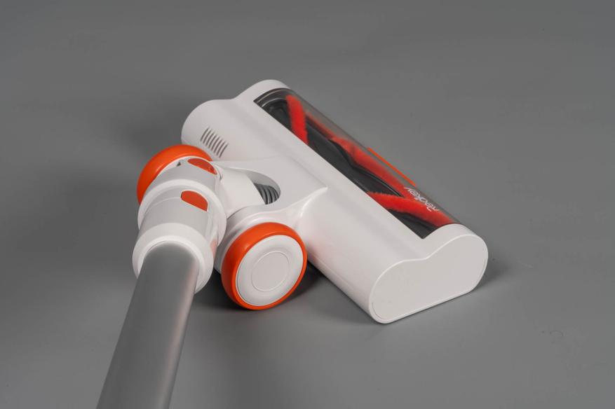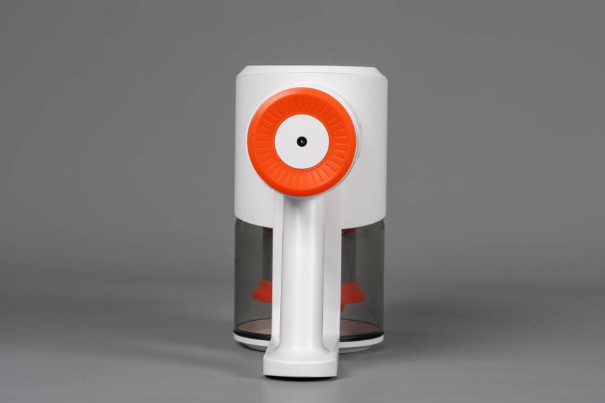 Аккумуляторный пылесос Redkey P8 отличается лаконичным бело-оранжевым дизайном.
