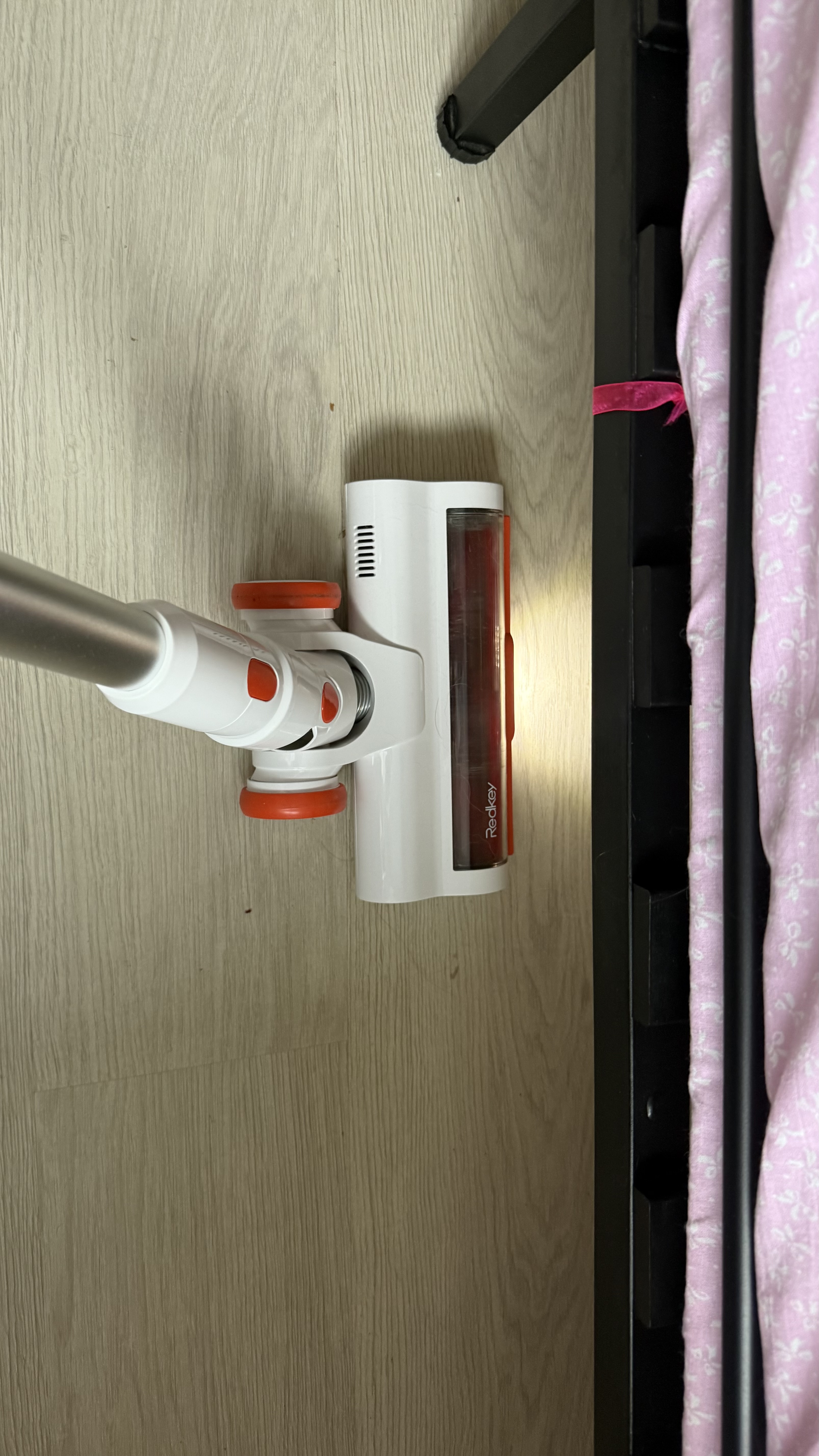 После завершения уборки Redkey P8 демонстрирует преимущества в хранении. Благодаря фиксированному углу соединения, пылесос устойчиво размещается в практически вертикальном положении. Такая особенность позволяет рационально использовать пространство в помещений.