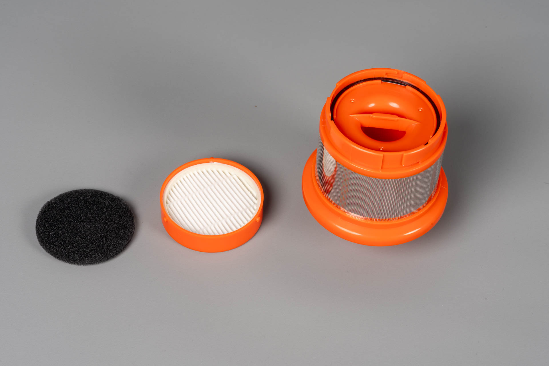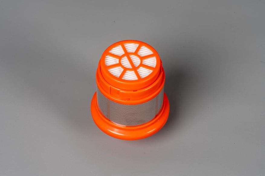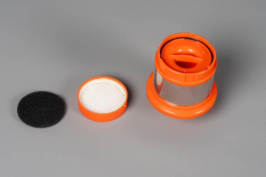 Система фильтрации состоит из 4х уровней: циклонной системы (фильтрует крупный мусор), HEPA фильтра 13 поколения (для мелкой пыли), поролонового фильтра и сетчатого фильтра (фильтрует волосы и обычную пыль), закрепленного поворотным механизмом.