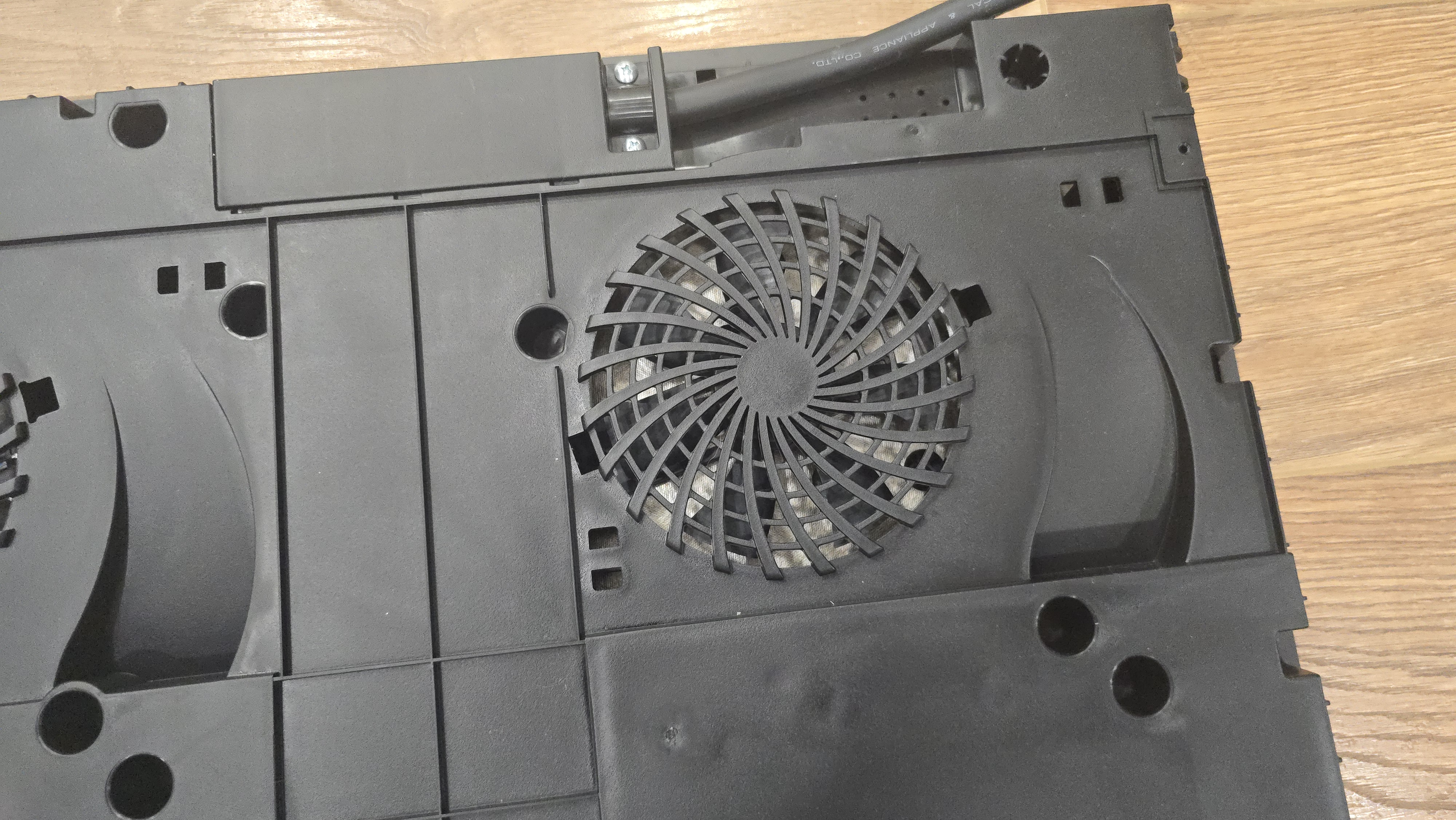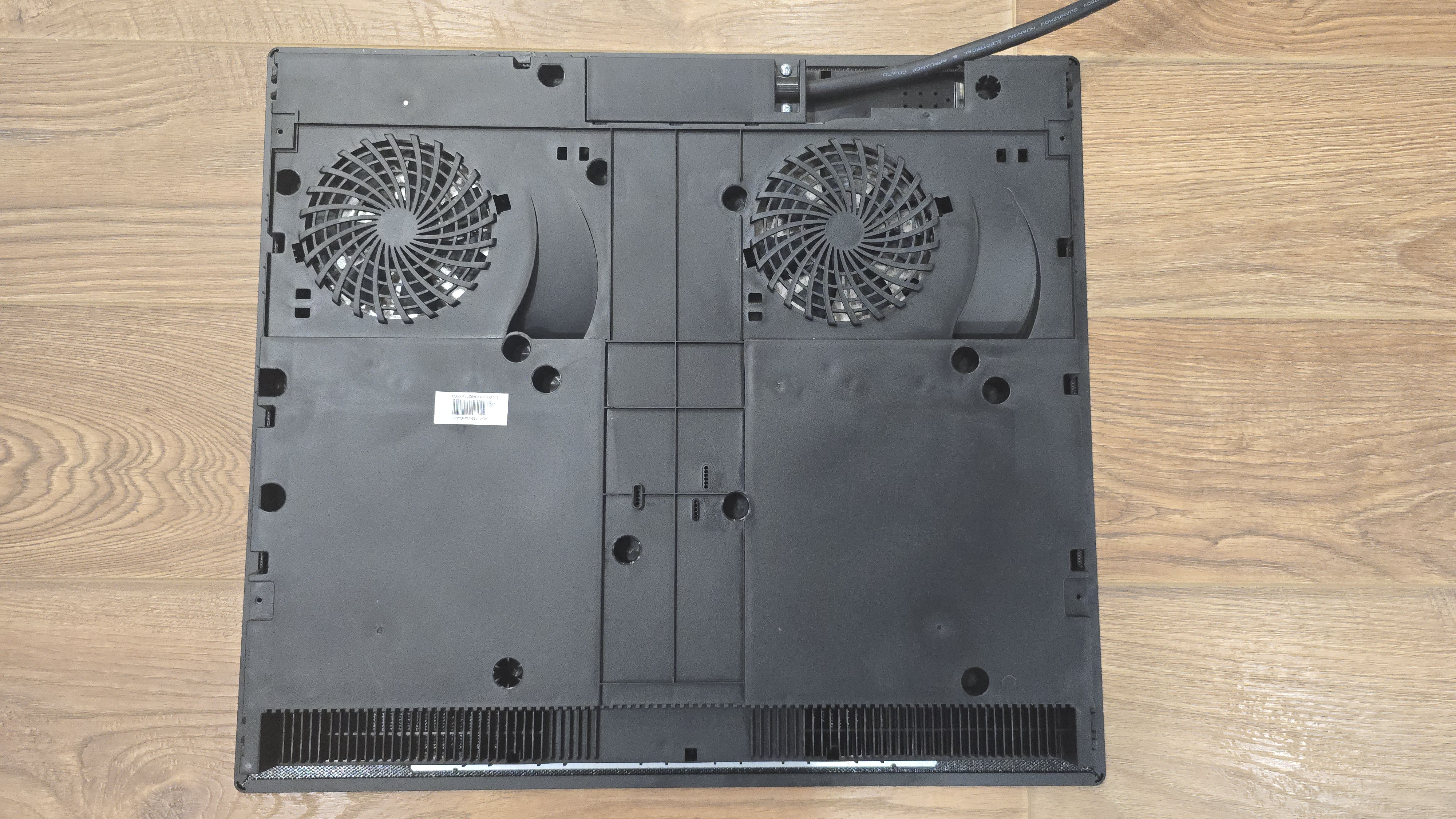 Тыльная сторона панели выполнена из термостойкого пластика с вентиляционными отверстиями и двумя мощными вентиляторами, для эффективного отвода тепла. Здесь же расположен пятижильный кабель для подключения к сети, который не оснащен вилкой, что соответствует требованиям для устройств высокой мощности.