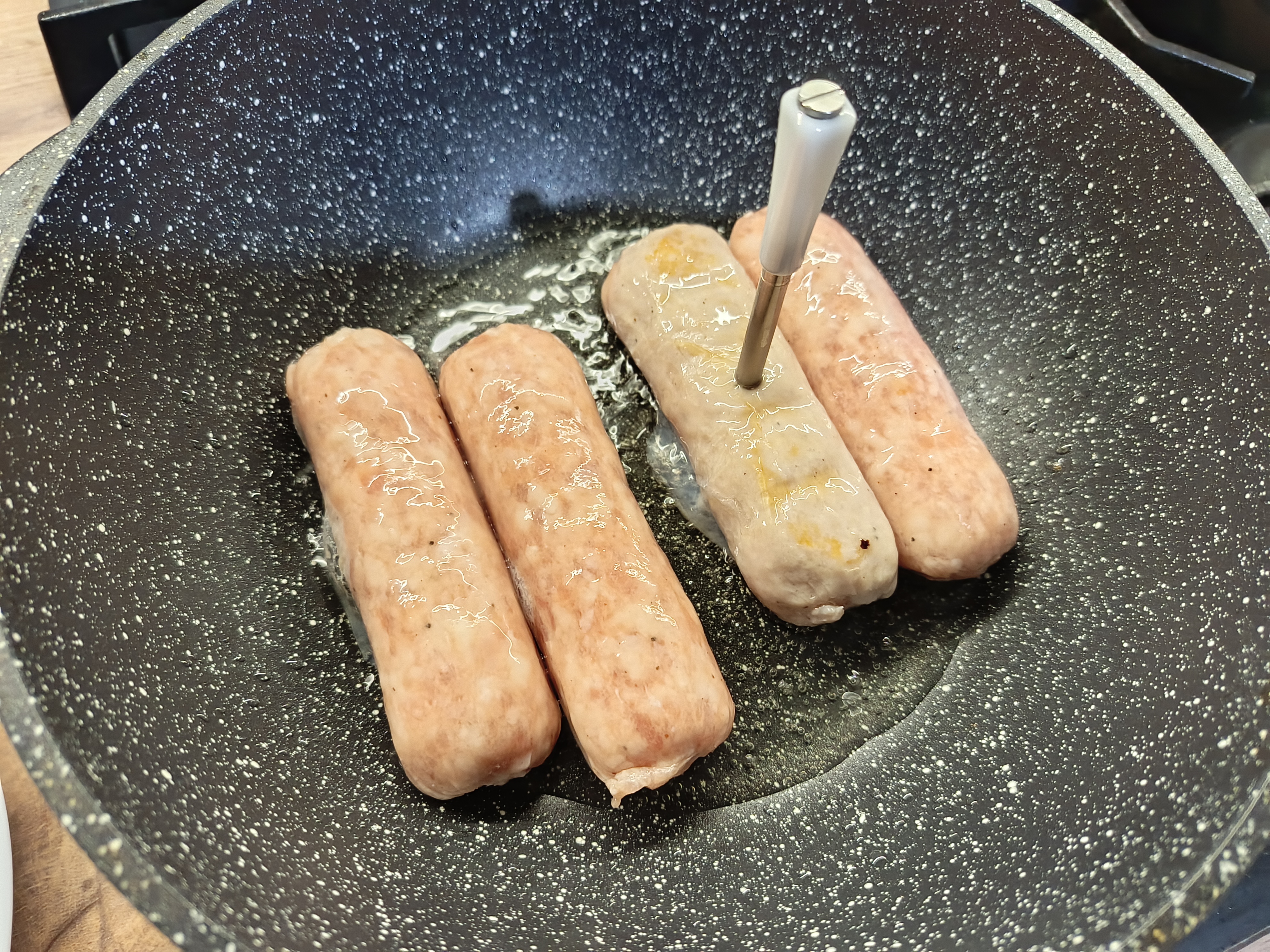 На сковороде термощуп отлично себя показал, приготовлены колбаски и кусок свинины, результатом доволен.