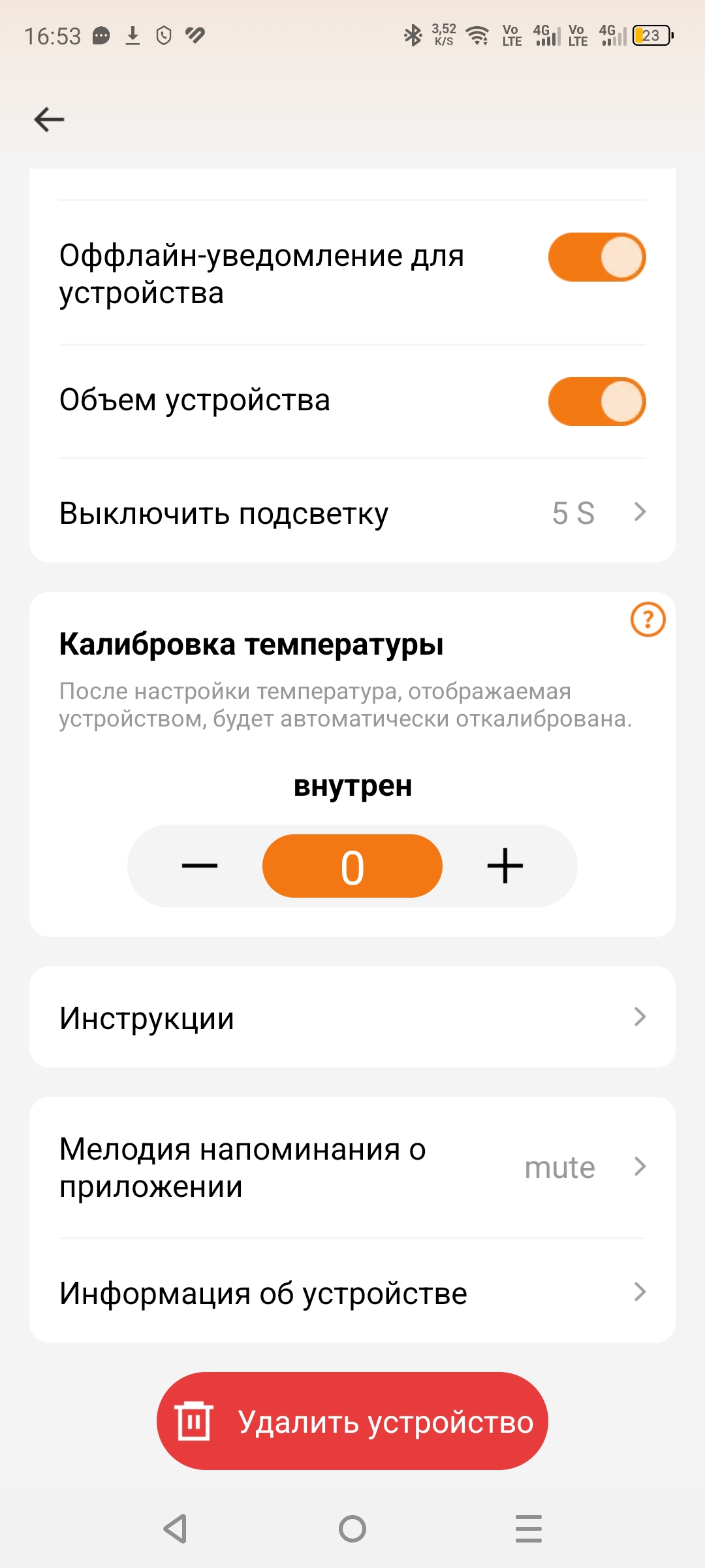 Первый тест. Вода была подогрета до 41 °C, и показания разных термометров немного различались. В обозреваемой модели температура оказалась на 4 градуса выше. Но производитель предусмотрел возможность калибровки — можно корректировать температуру в диапазоне +-7 градусов как в меньшую, так и в большую сторону. Калибровка выполняется буквально в пару нажатий через приложение на смартфоне, так что корректировку сделать очень просто.