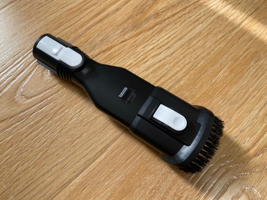 Благодаря щелевой насадке убирать мусор и пыль в труднодоступных местах можно без проблем.