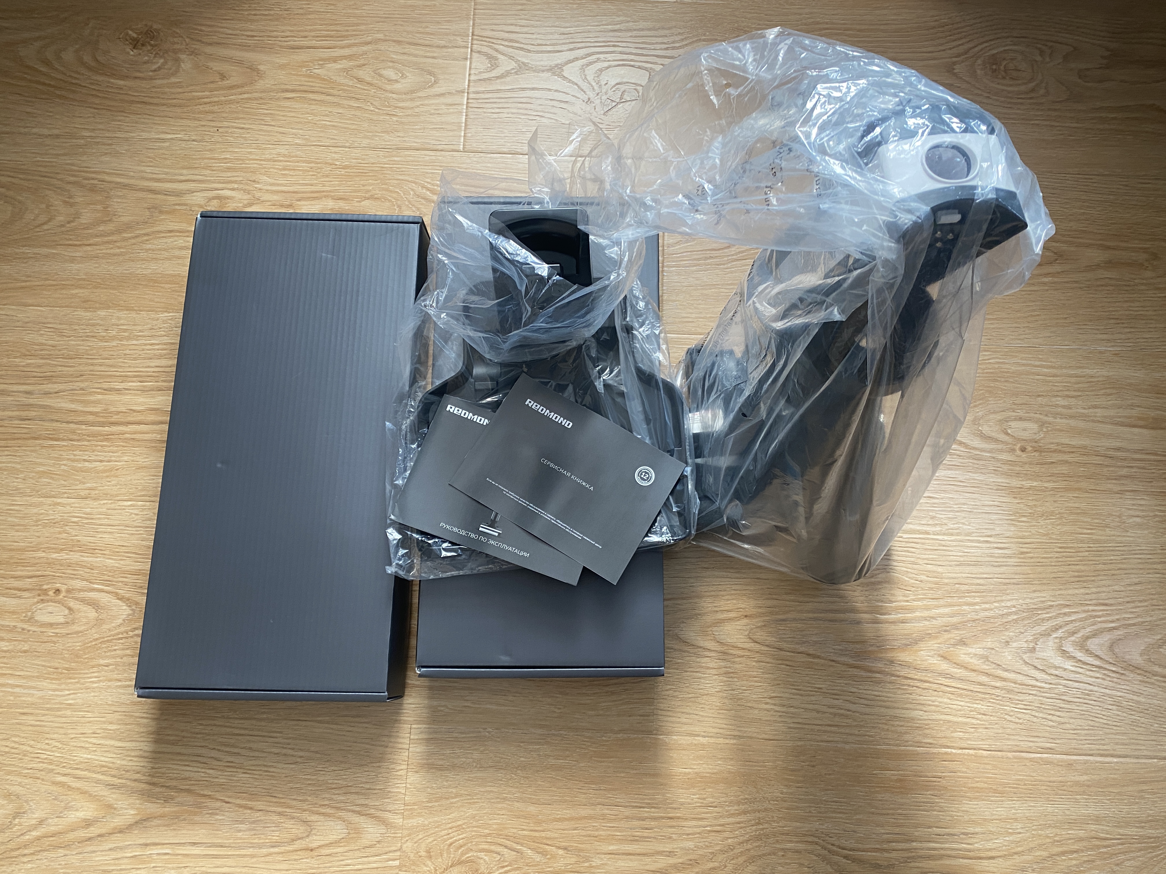 Пылесос REDMOND MultiClean RV-UR390 поставляется в достаточно большой коробке серого цвета. На коробке имеется полноценная цветная печать самого пылесоса и всей комплектации. Открыв коробку мы можем увидеть, что пылесос с двух сторон зафиксирован при помощи пенопластовых форменных вставок, для обеспечения безопасности во время транспортировки. Также хочу заметить, что сам пылесос и все комплектация уложены в индивидуальные целлофановые пакеты. Как можем заметить на фото, комплектация ну, уж очень большая.