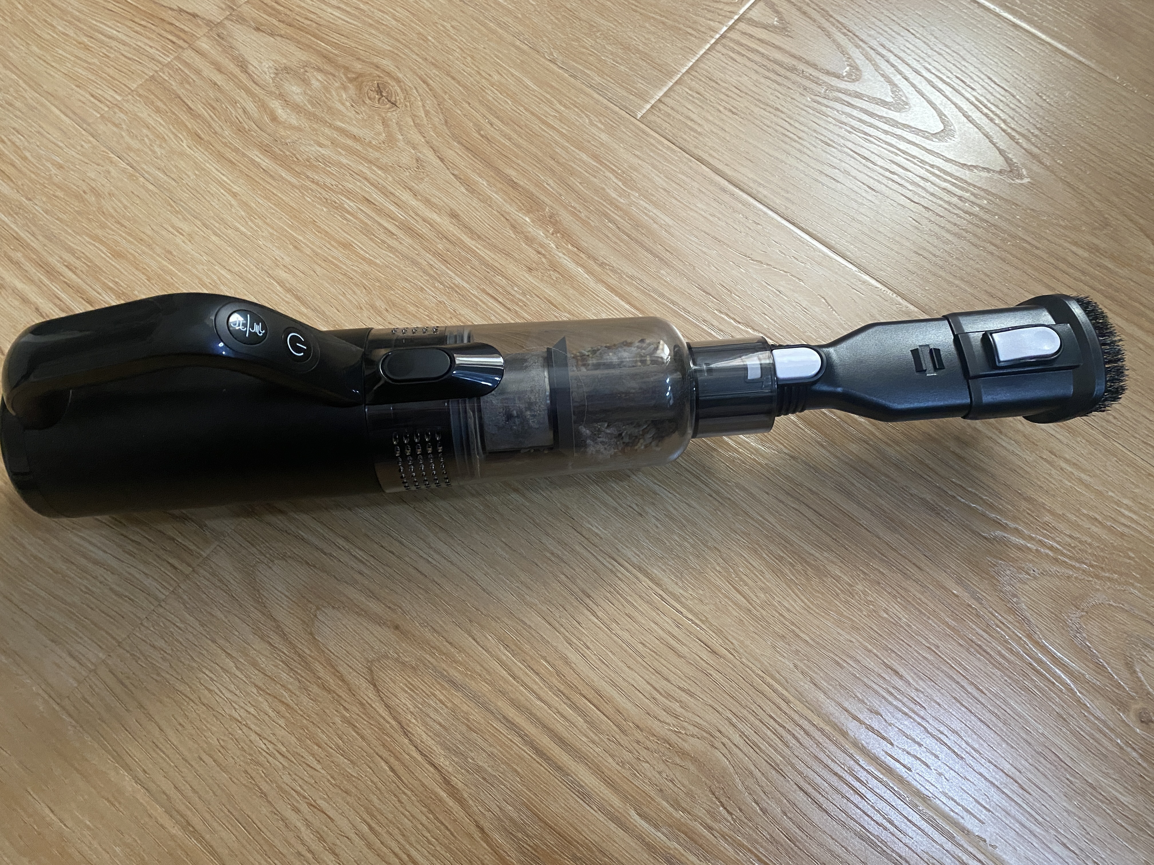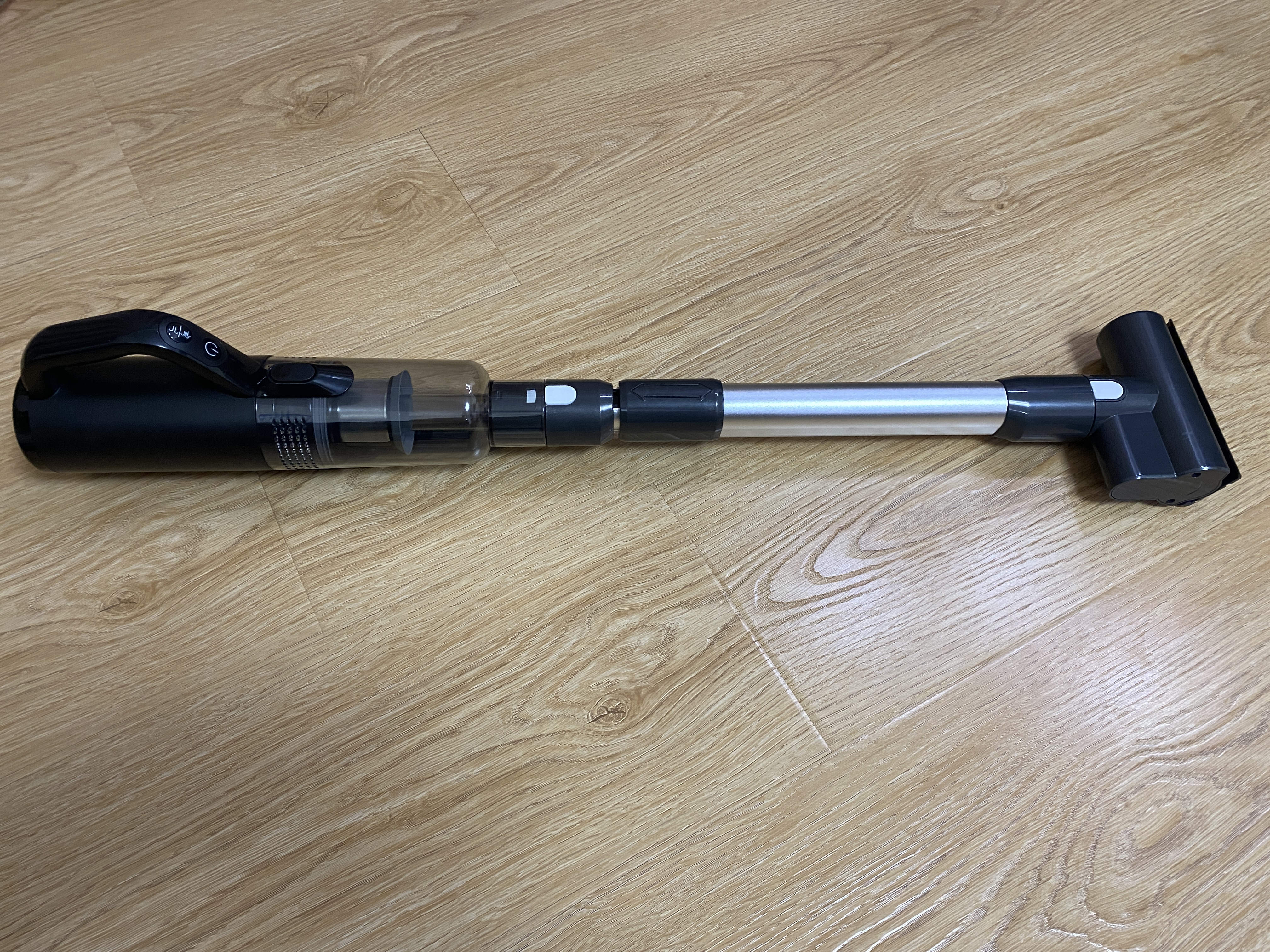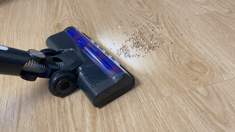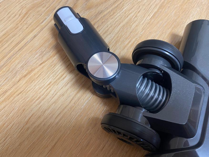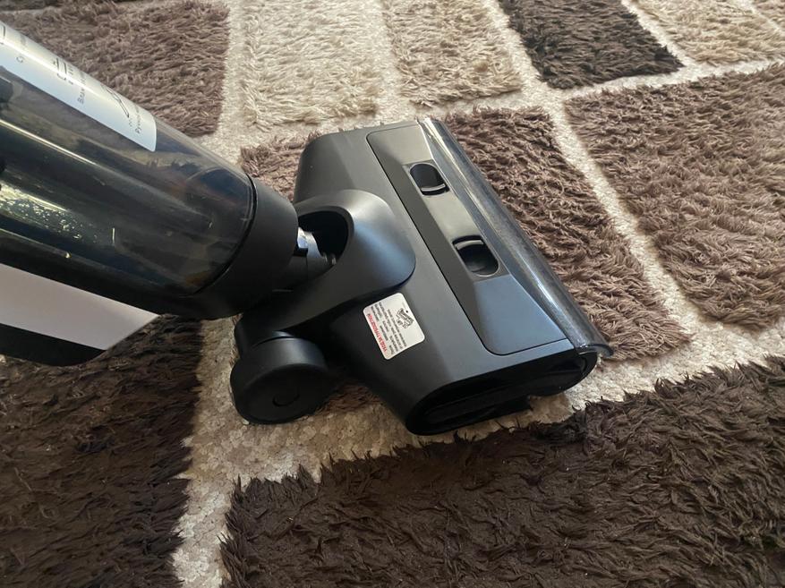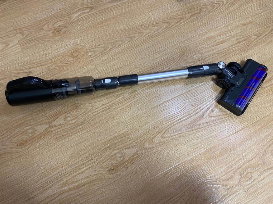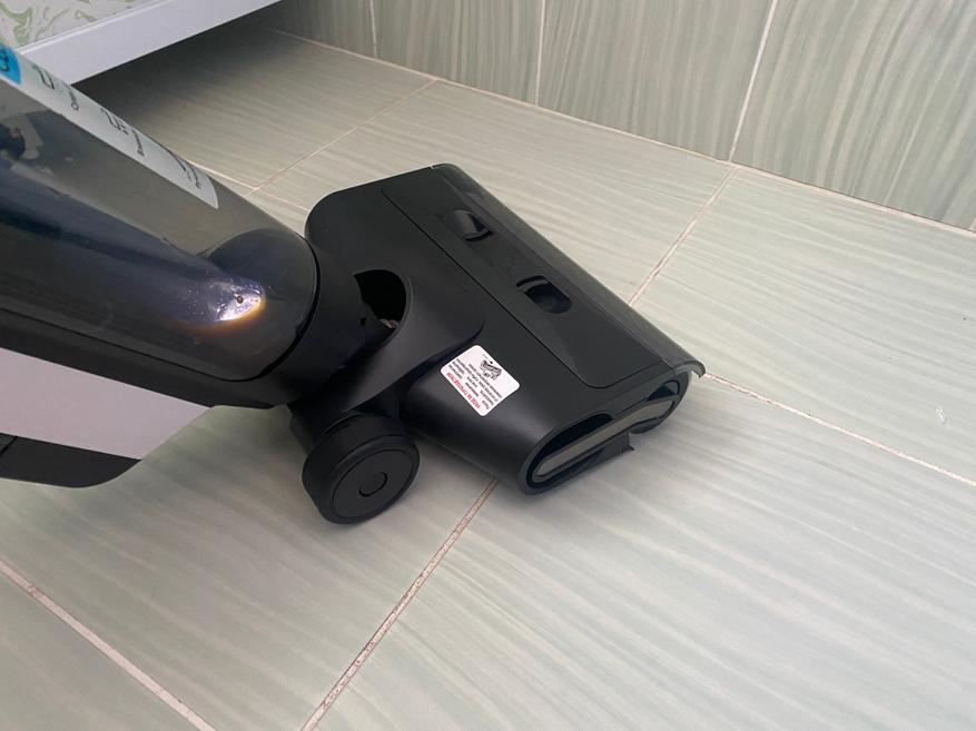 Конфигурация для уборки гладкого напольного покрытия ничем не отличается от обычного беспроводного аккумуляторного пылесоса. Удерживать пылесос для уборки весьма удобно, а благодаря подвижному механизму насадки, получается убрать загрязнения не только в углах, но и под кроватью или комодом. Также хочу отметить, телескопическую трубку, благодаря которой пользоваться пылесосом будет удобно людям любого роста. Наличие на передней части светодиодной подсветки позволяет убирать темные помещения без включения основного света.