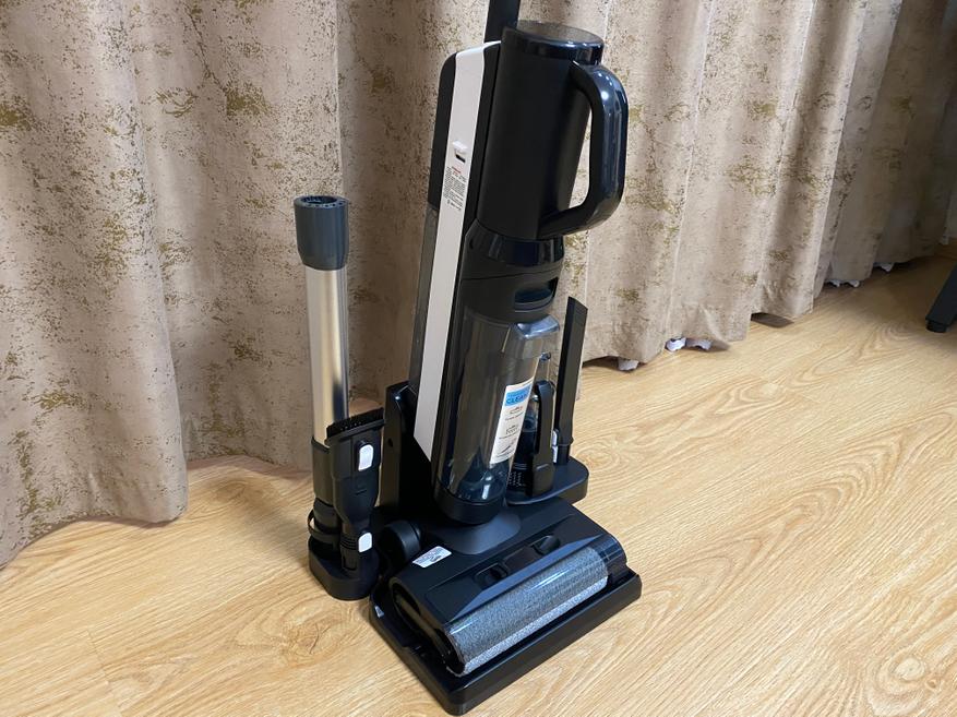 Перед использованием пылесоса производитель рекомендует распаковать пылесос и удалить все имеющиеся транспортировочные наклейки и пленки. Перед включением необходимо зарядить аккумулятор до 100%. Хочу отметить, что пылесос можно зарядить только на зарядной станции используя конфигурацию для влажной уборки. Парковочного положения у основного модуля нет, и необходимо устанавливать на станцию для зарядки или упирать об стену.