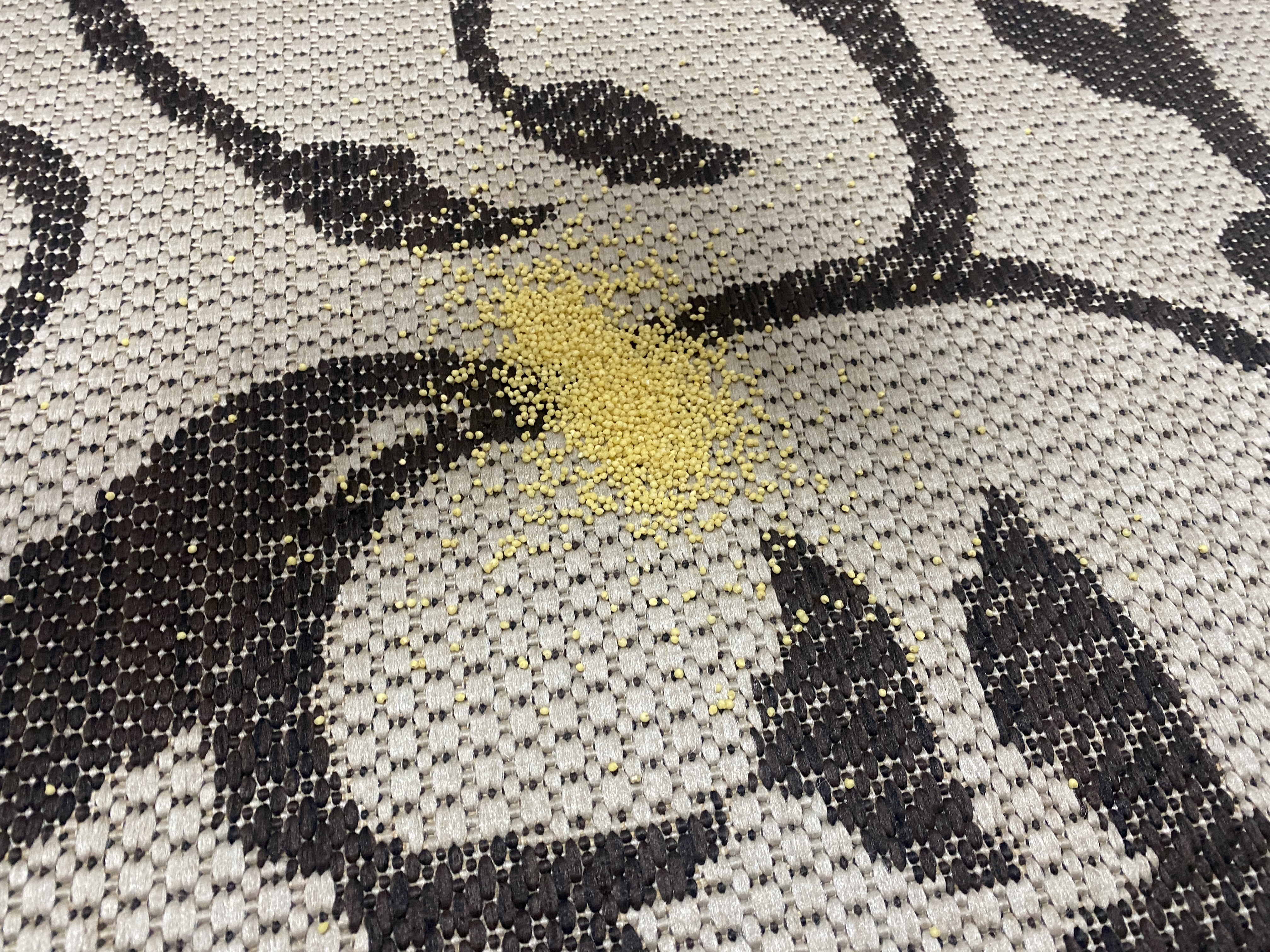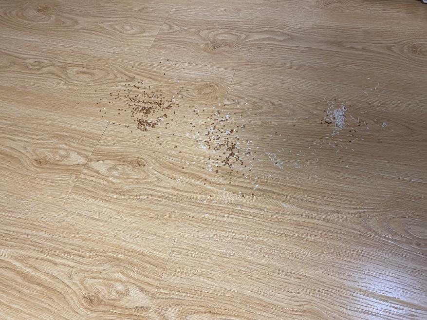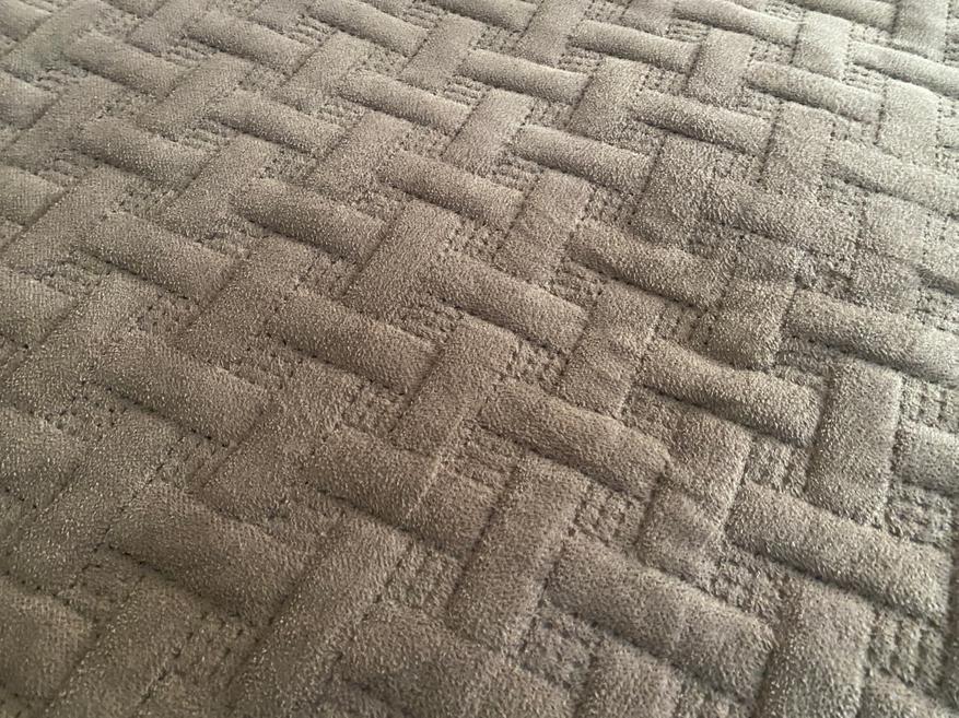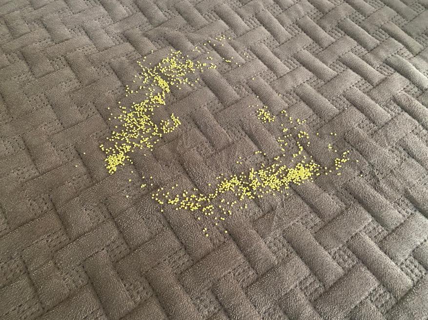 Уборка сыпучего мусора на диванном покрывале.
