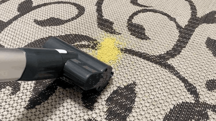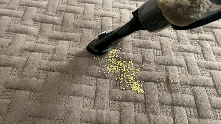 Уборка сыпучего мусора на ковровом покрытии.