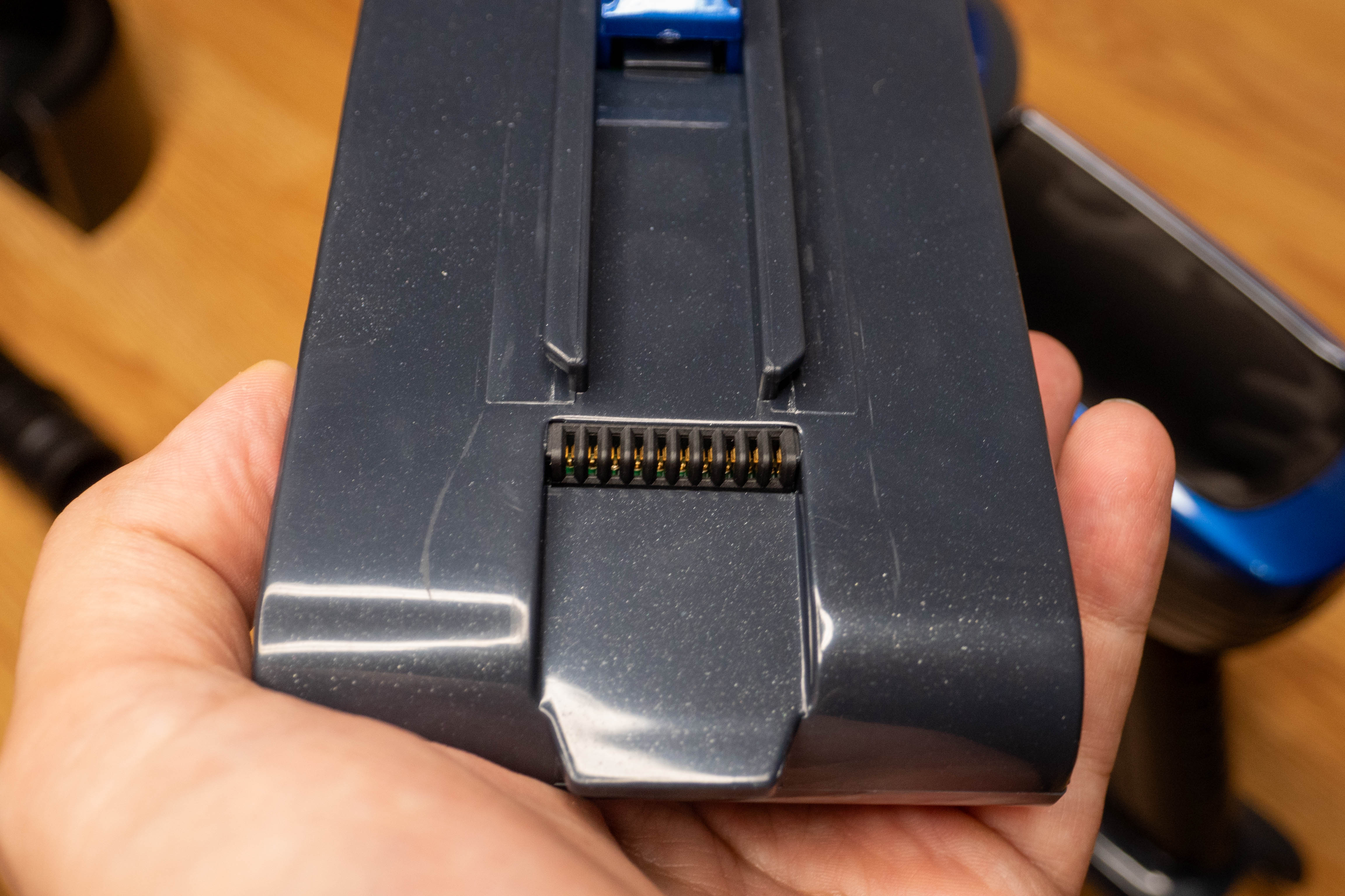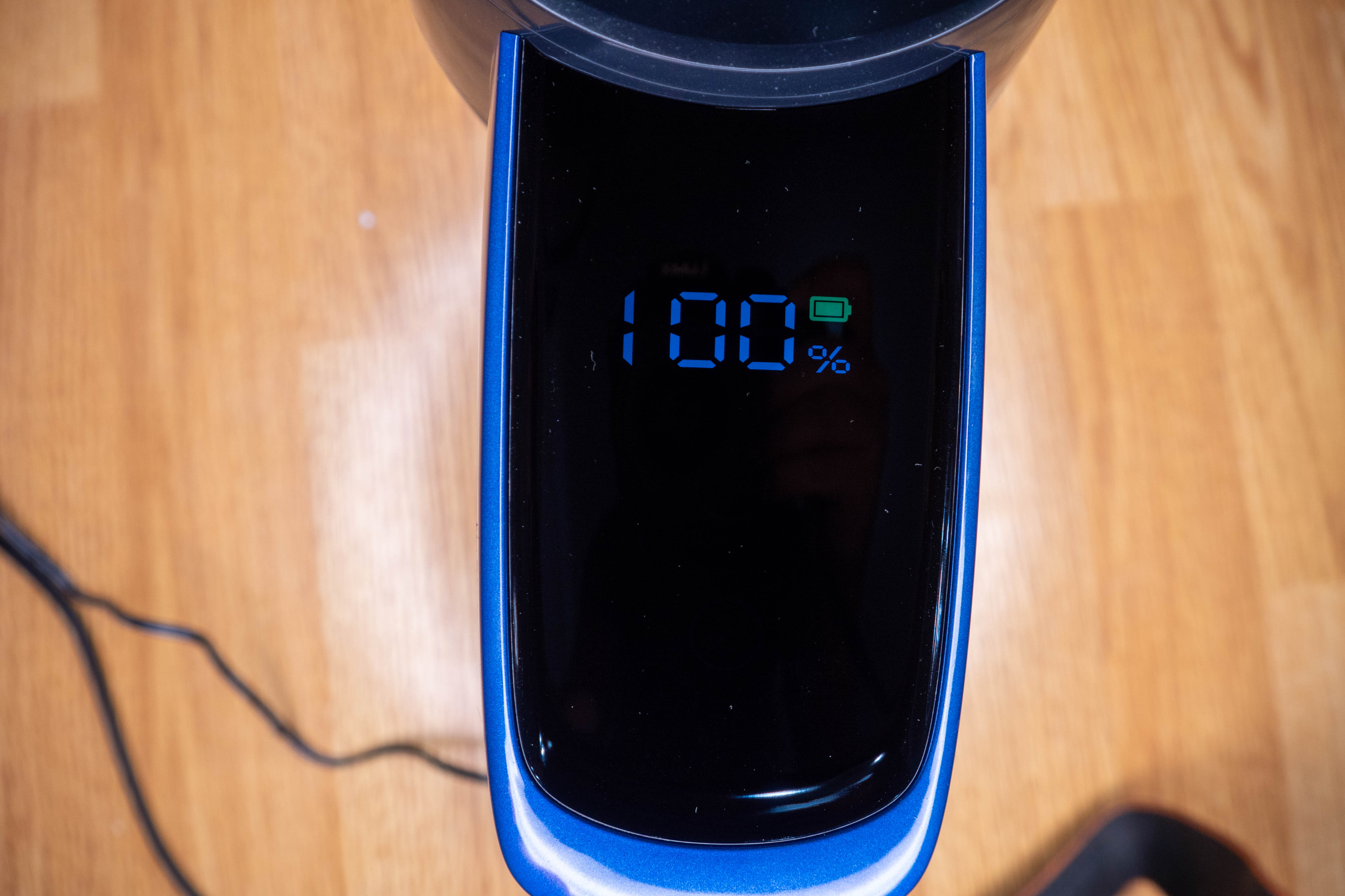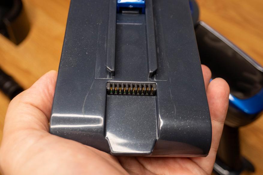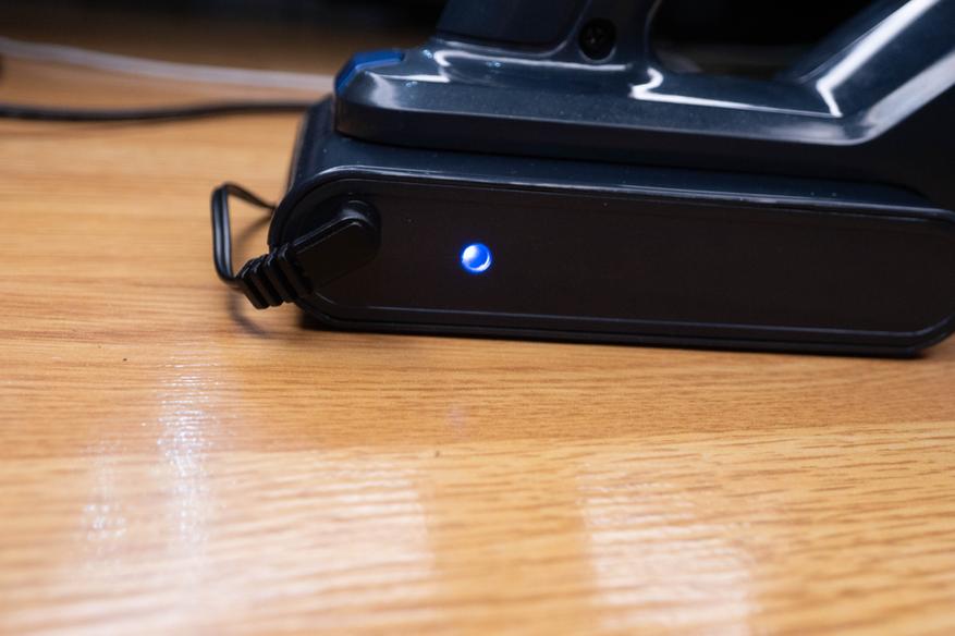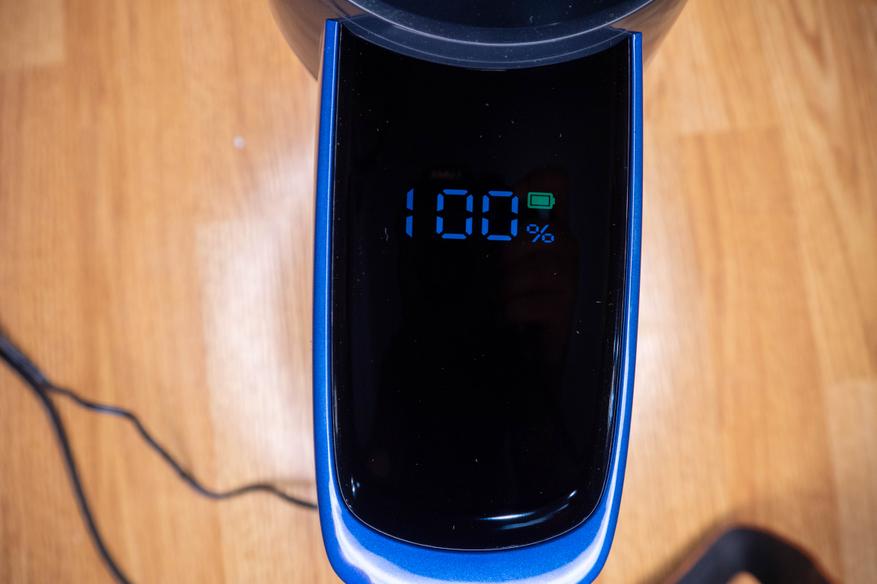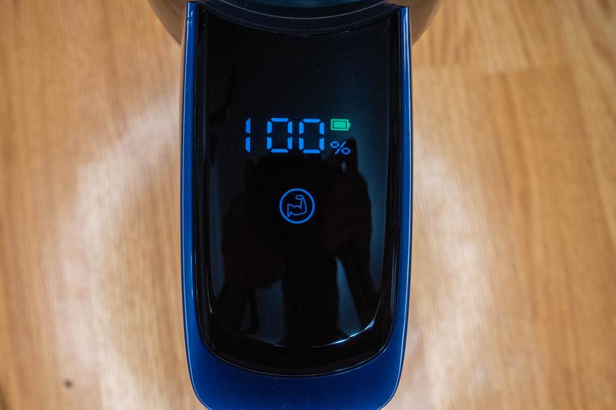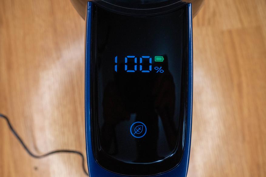 Сначала зарядил аккумулятор. Его можно не подключать к пылесосу, в этом случае придется ориентироваться на индикатор рядом с разъемом, а не на подробную информацию на дисплее.