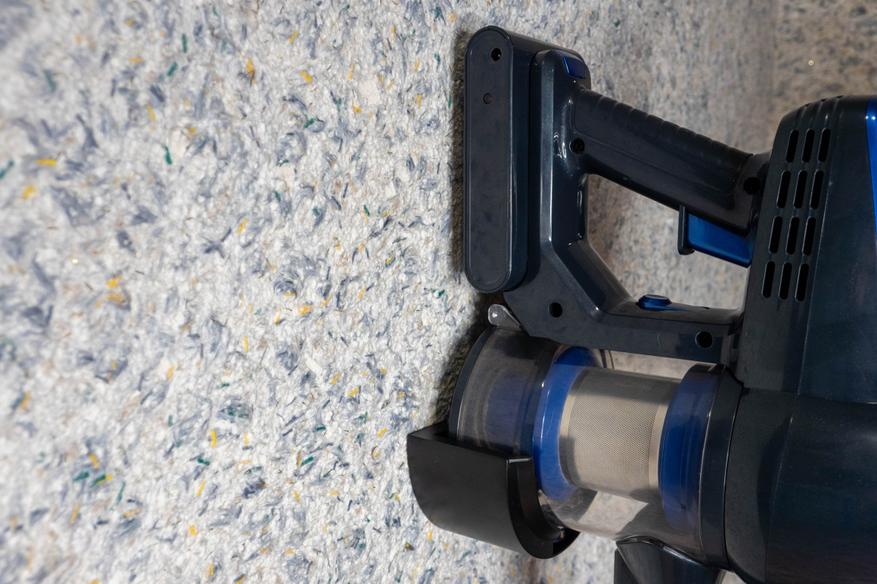 После нажатия на курок, по умолчанию включается экономичный режим, если его не хватает, можно нажать кнопку, расположенную на торце корпуса и активировать турборежим. В нем аккумулятор садится быстрее, но и ворсистые поверхности очищаются быстрее.