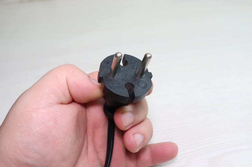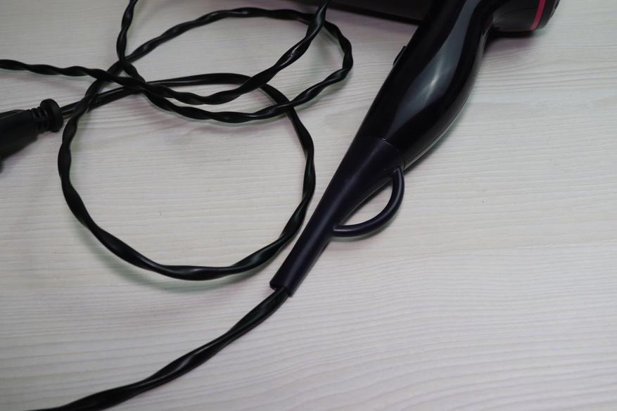 В качестве кабеля питания используется двухметровый провод, что очень удобно при использовании, и позволяет использовать фен даже в местах, где изначально для него не предусмотрена розетка. Кабель имеет стандартную европейскую вилку, без дополнительного заземления.