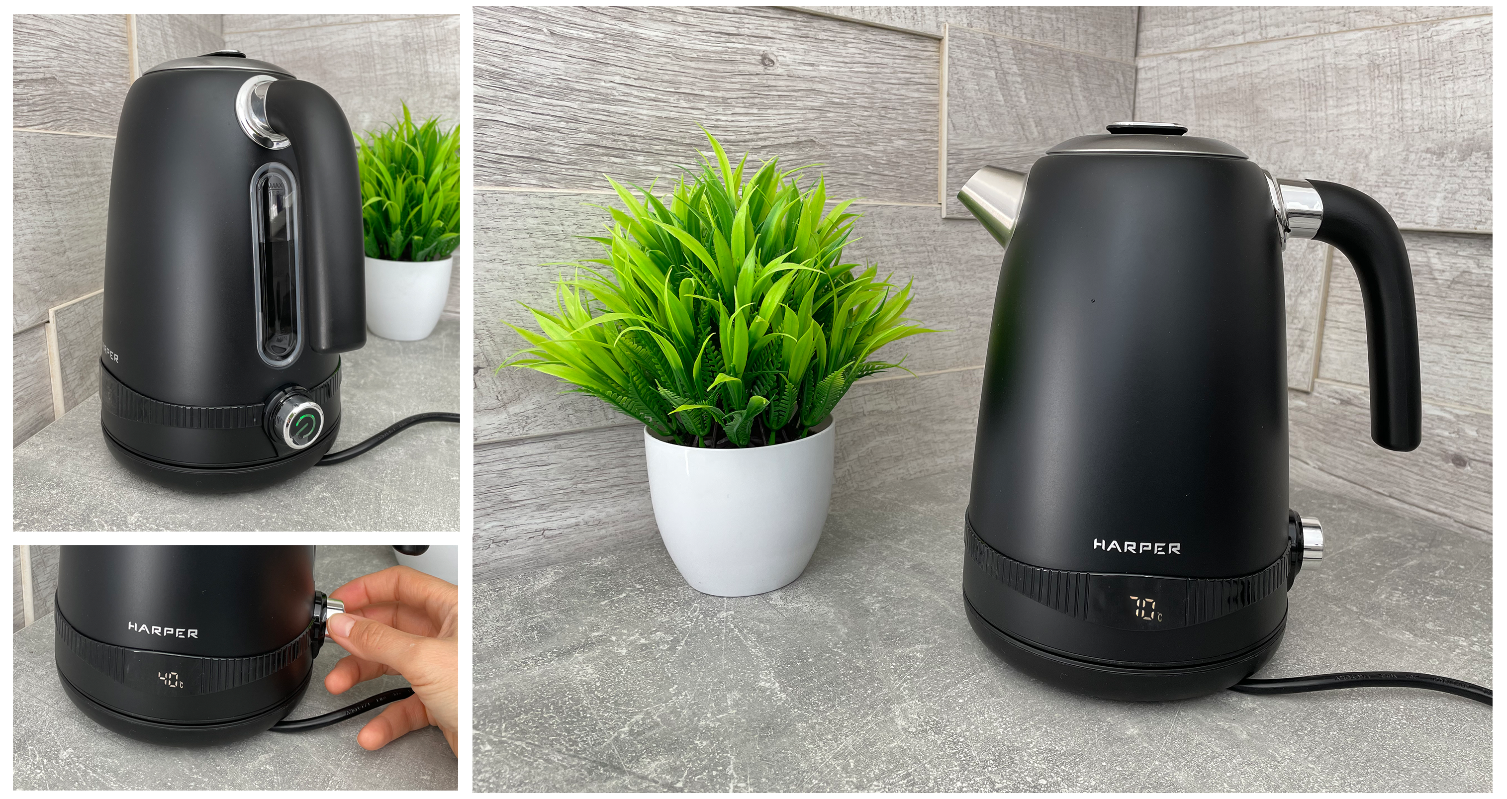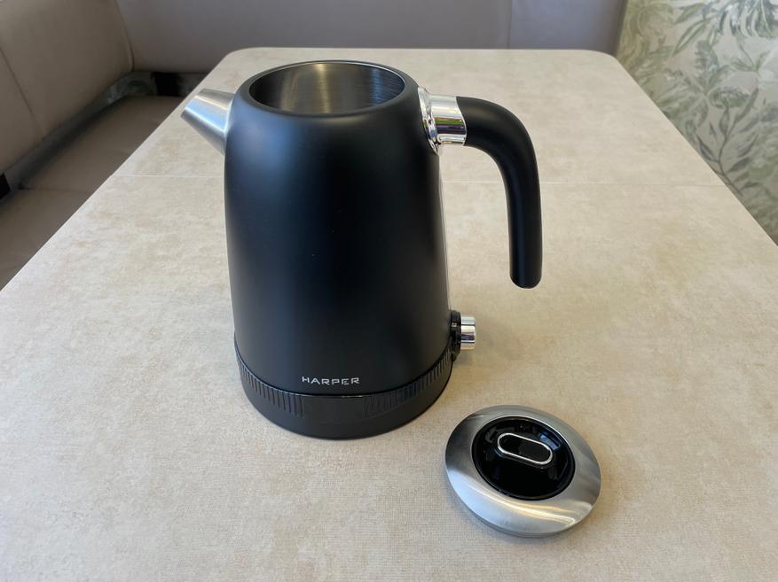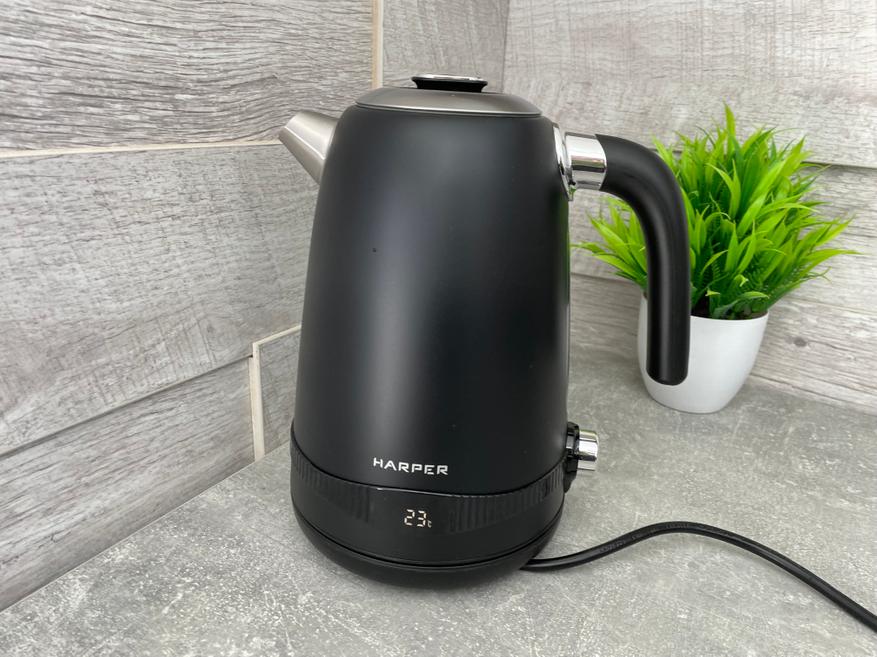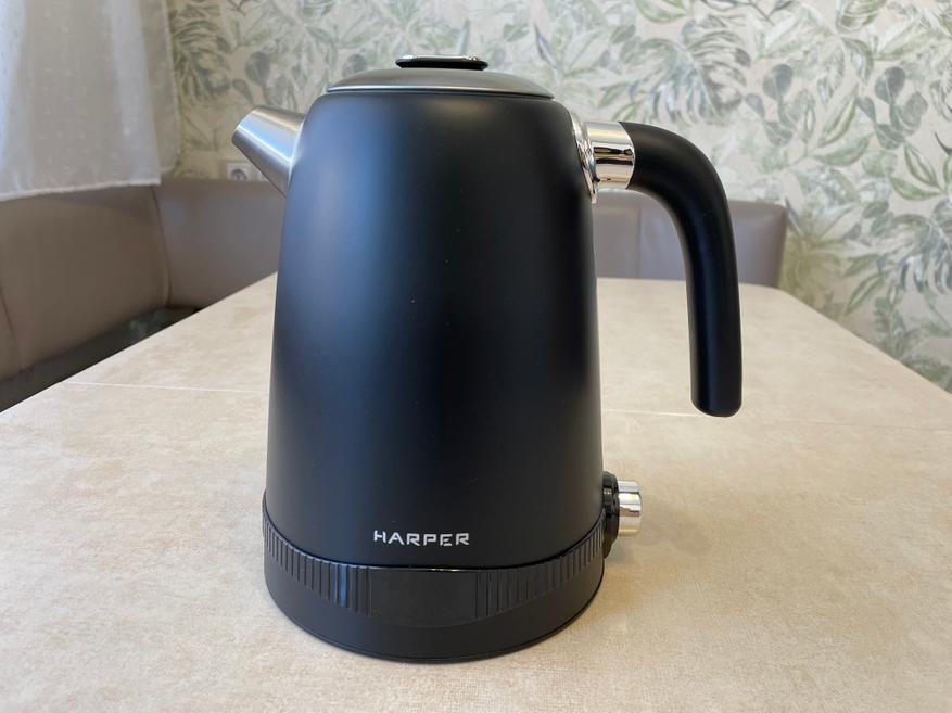 За счет цвета чайник не маркий, на корпусе не остается отпечатков от пальцев, как на металлических моделях. Дизайн современный, благодаря широкому носику вода не разбрызгивается. И приятная цена для многофункционального чайника. На официальном сайте HARPER данную модель можно приобрести за 2540 рублей.
