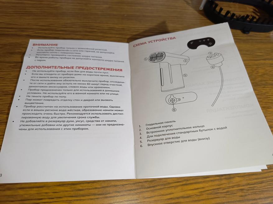 В этой модели в целом мне всё понравилось, за исключением низкой техники безопасности. Здесь нет автоматического отключения. Было бы неплохо добавить автоотключение по типу, как это реализовано в большинстве утюгов. Также во время установки отпаривателя на стол от вибрации помпы, которая подает воду, отпариватель начинает медленно сам двигаться по столу и может опрокинуться из-за низкой устойчивости. Конечно, всё это обусловлено ценой, если нужно автоотключение, то смотрите модели дороже. Не забывайте, что здесь нет датчика воды, и как только вы заметили, что подача пара резко уменьшилась или кончилась, нужно выключить отпариватель. Если продолжить использовать его без воды, то помпа может выйти из строя.