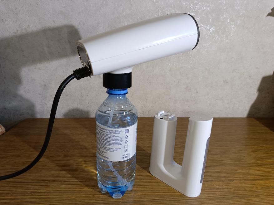 Первое, надо определиться, сколько понадобиться вам воды для использования. Если 300 мл вам хватит, то ставим резервуар-рукоять, если вам будет мало этого, то можно подключить внешний резервуар. Главный критерий, чтобы его глубина была не больше 19,5 см, так как такая длина у трубки. Крепление бутылки сделано на уплотнительном кольце, и подходит обычная пластиковая бутылка.