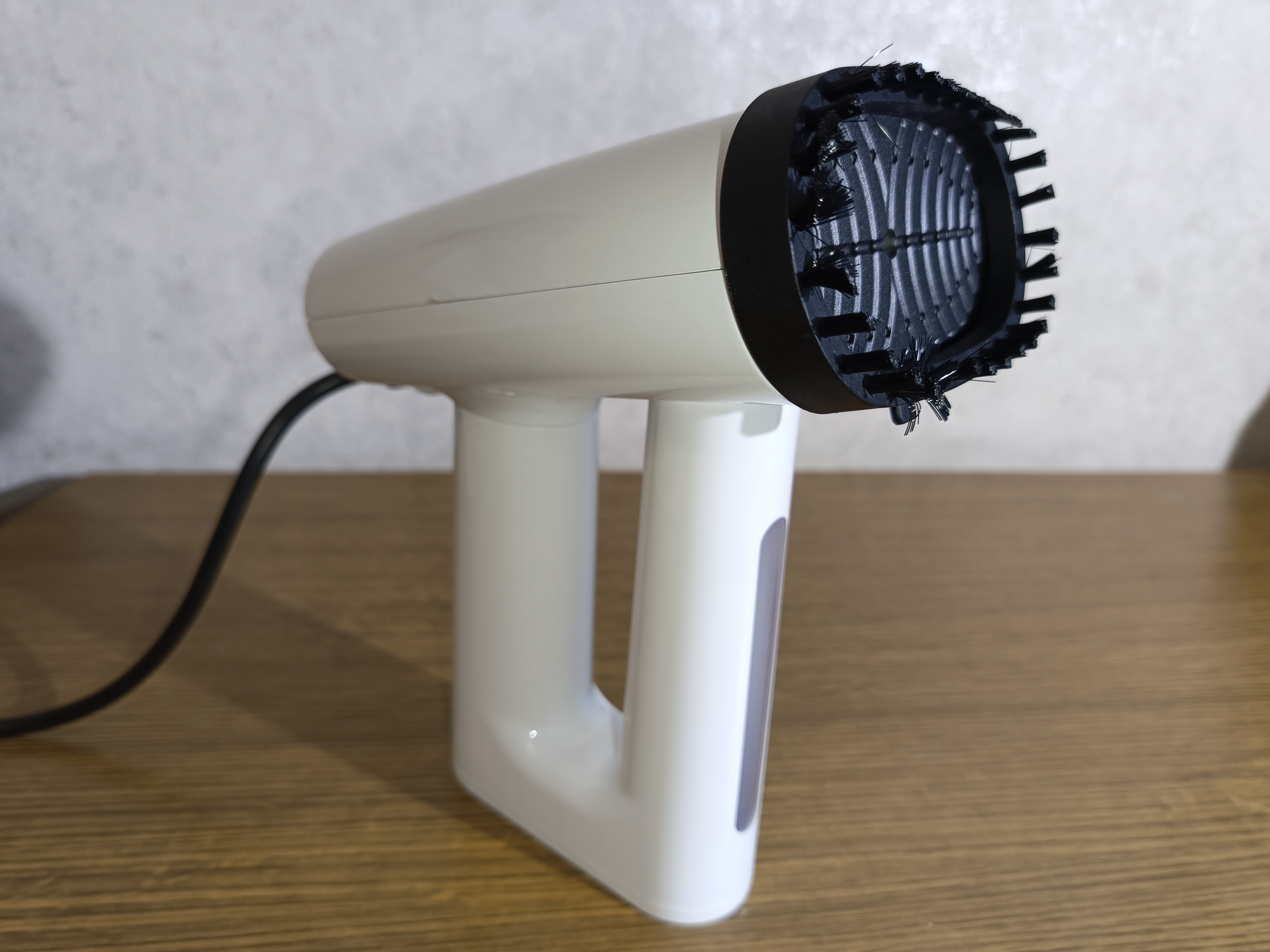 Керамическая поверхность с возможностью установки насадки для очистки шерсти и волос. Всё управление реализовано с помощью одной механической кнопки. Она переключает режимы работы в цикличном порядке.