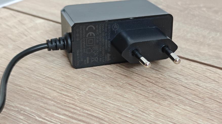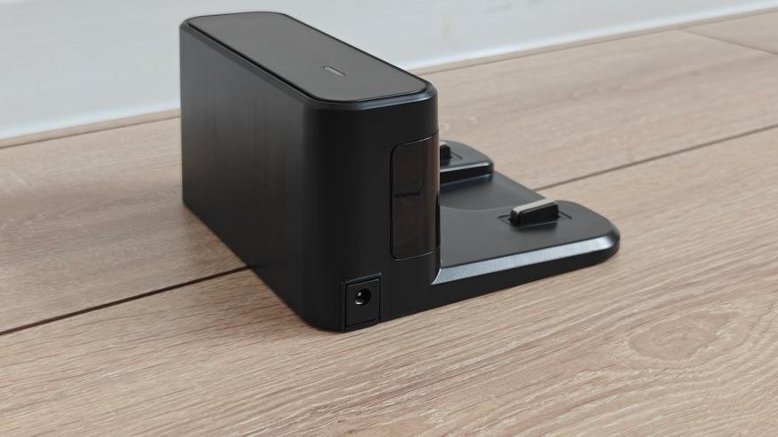 База для зарядки очень традиционна, это обычный блок с подпружиненными контактами для зарядки батареи и датчики обнаружения, прикрытые непрозрачным пластиком. На нижней части базы имеются резиновые площадки, чтобы она не скользила по гладкому полу. Блок питания классический, с параметрами на выход 19В, 0.6А 11Вт.