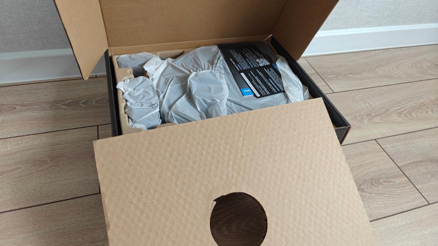 Робот приходит в двух коробках. Первая транспортировочная, а вторая глянцевая, стильно оформленная в черном цвете. Преимущества робота пылесоса нанесены на коробке на русском языке. Внутри нас ждет картонный поддон со специальными нишами и защитная картонная крышка. Все части комплектации упакованы в пакеты и плотно расположены в своих нишах, чтобы ничего не тряслось при транспортировке.