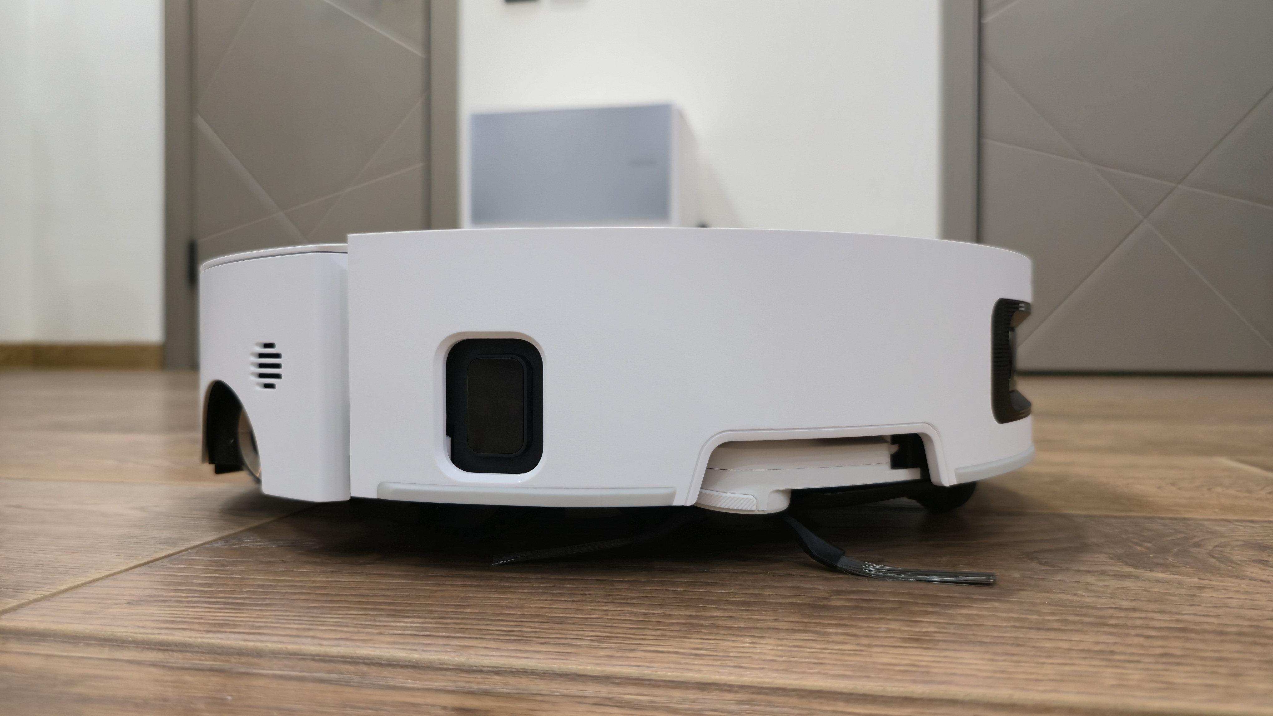 Самое приятное началось потом. Он аккуратно обходит каждую планку по периметру, собирает пыль прям до линии контакта, и вокруг ножек не остается вот этой вечной серой каймы. Сидишь, смотришь, как он спокойно рисует чистую рамку, и понимаешь, что это то поведение, которого всегда не хватало обычным робопылесосам. Никаких цирковых номеров, никакого героизма, просто чистая кромка там, где раньше приходилось добирать руками или быстро перетаскивать стол на пути у робота. Удобно, и приятно наблюдать.