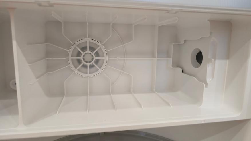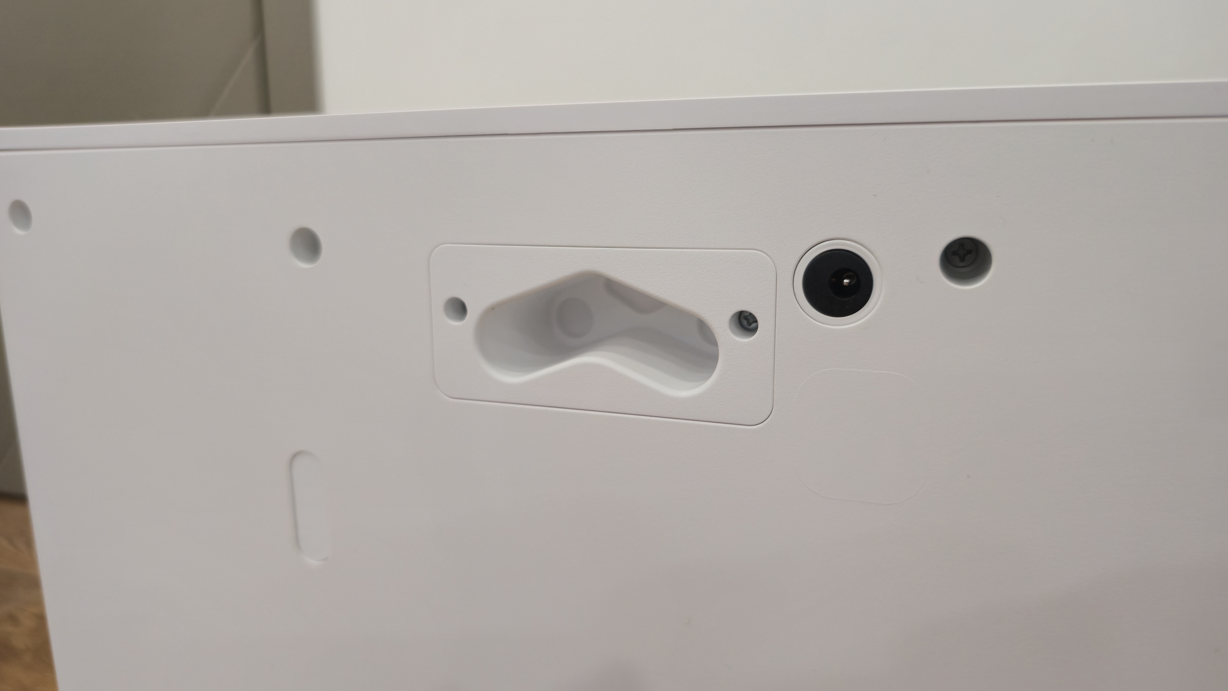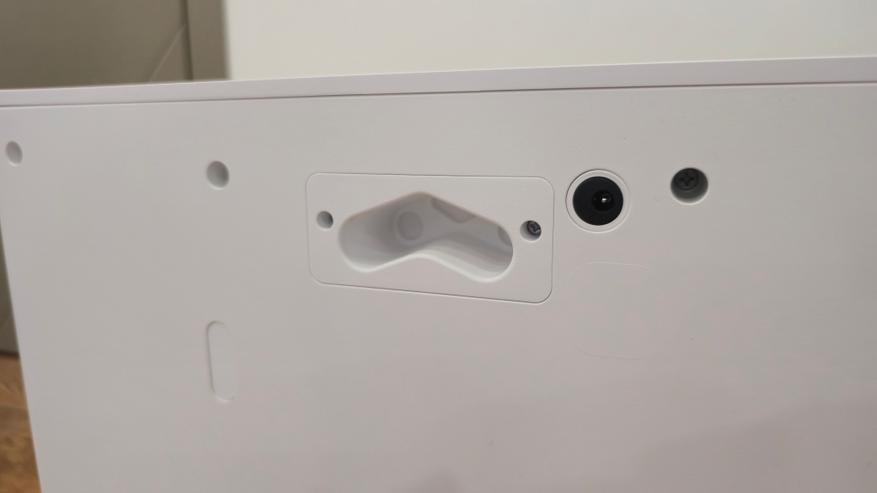 Сзади у станции сделана углубленная ниша для укладки сетевого шнура и скрытый разъем для его подключения. Выше находится закрытый сервисный порт — он предназначен для подключения модуля водоподачи и слива.
