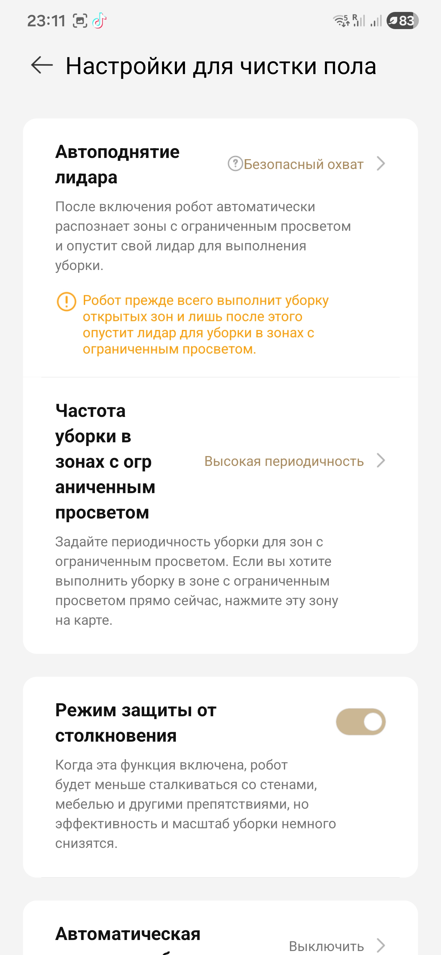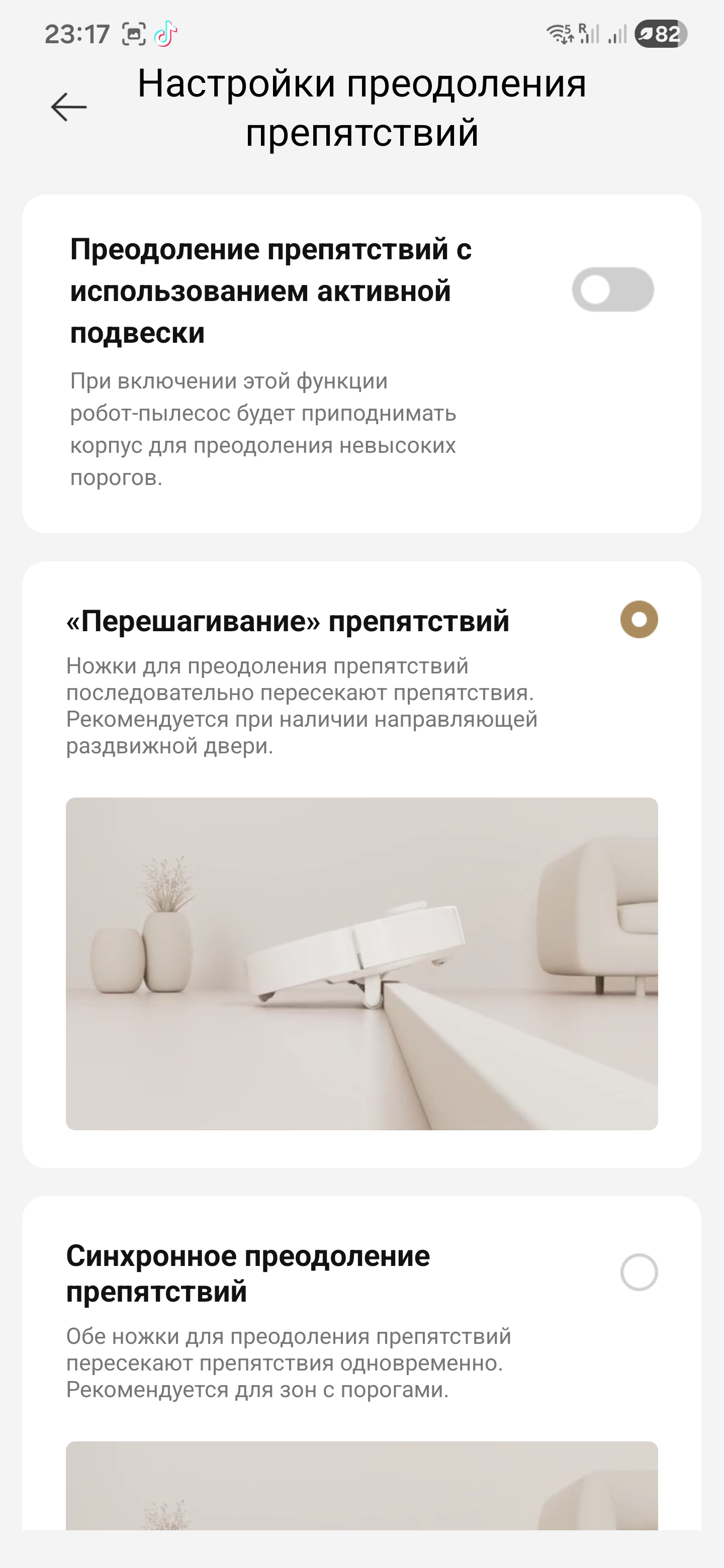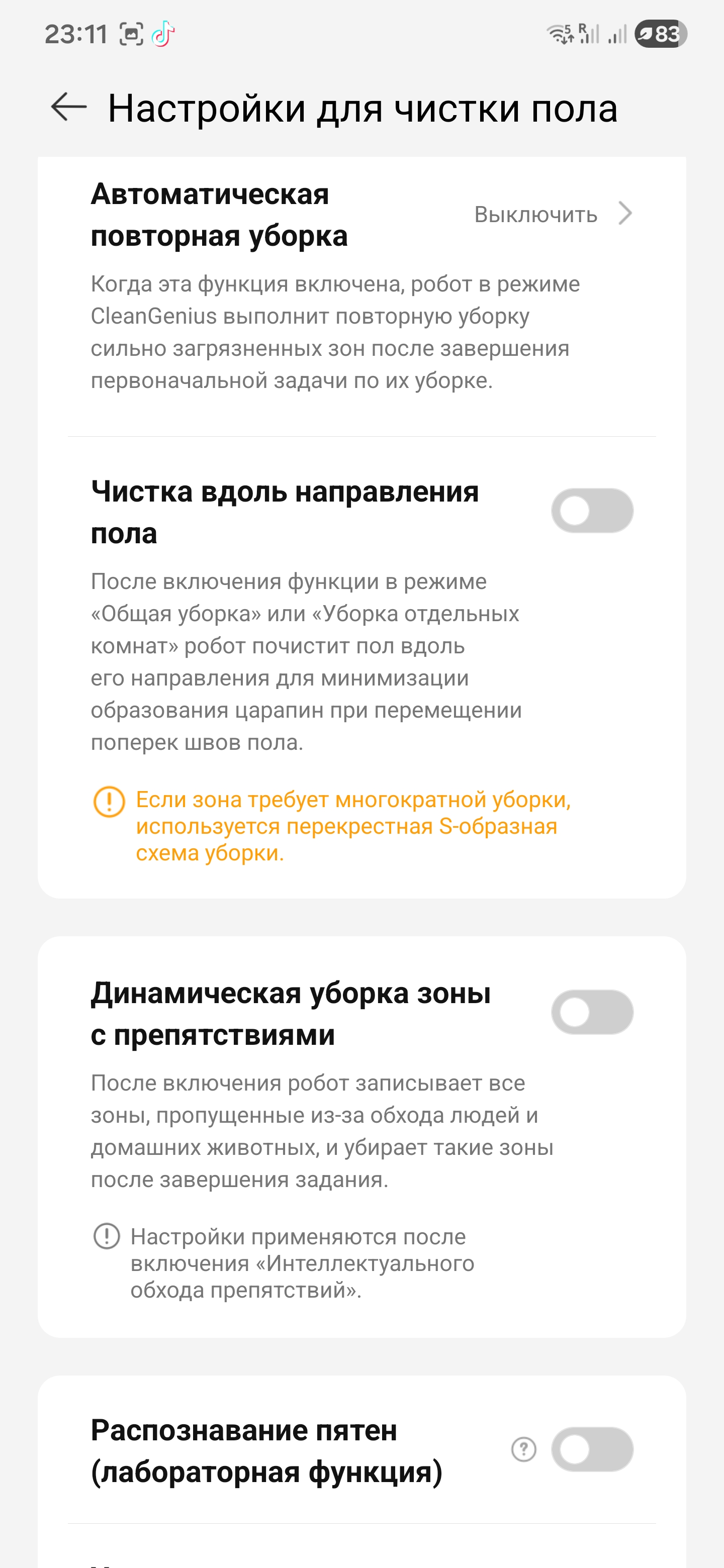 Как я сразу это не заметил… :) Сделал бы жизнь проще на час раньше. Но в этом и плюс: если заранее понять, какое препятствие у вас дома, в приложении есть готовая подсказка под каждый случай. Выбираешь нужный сценарий — и робот повторяет его без импровизации.