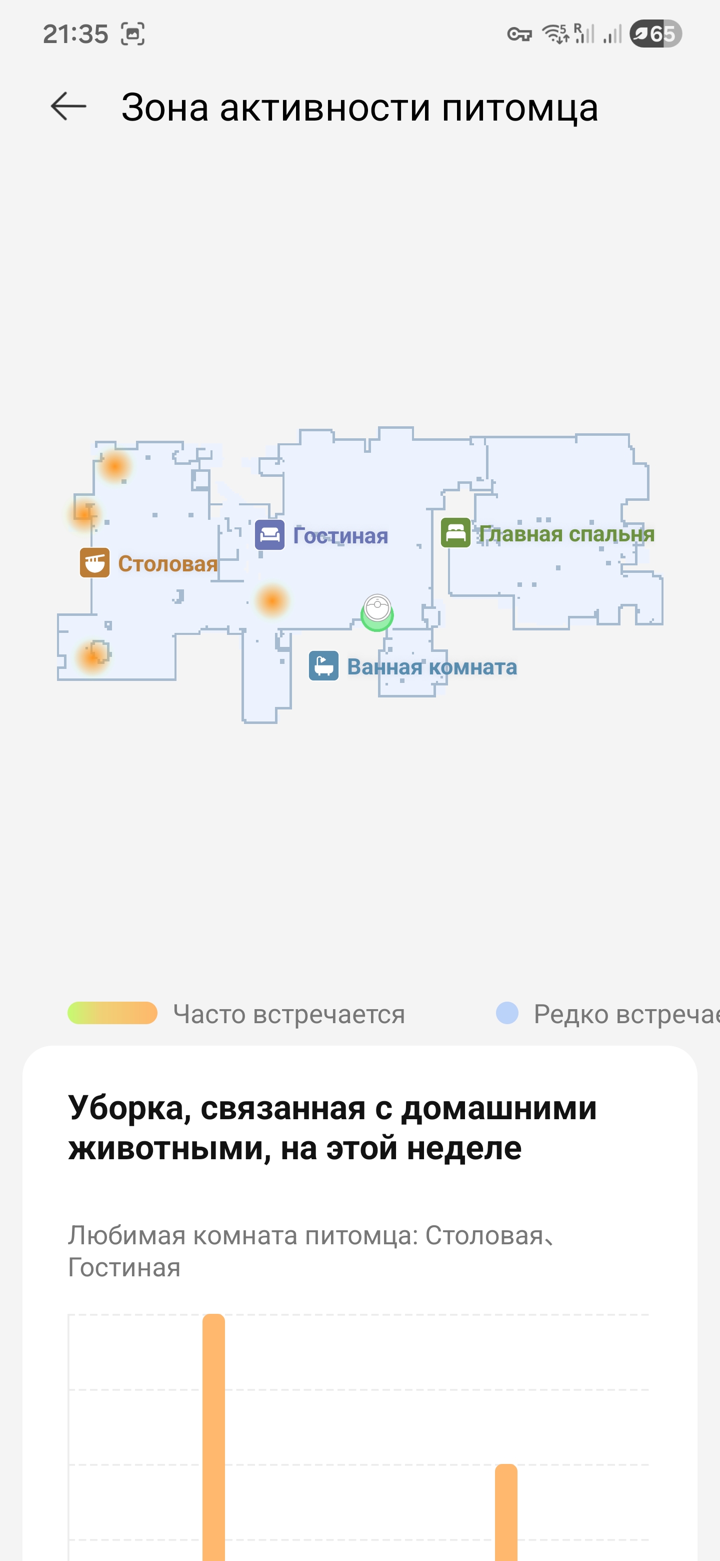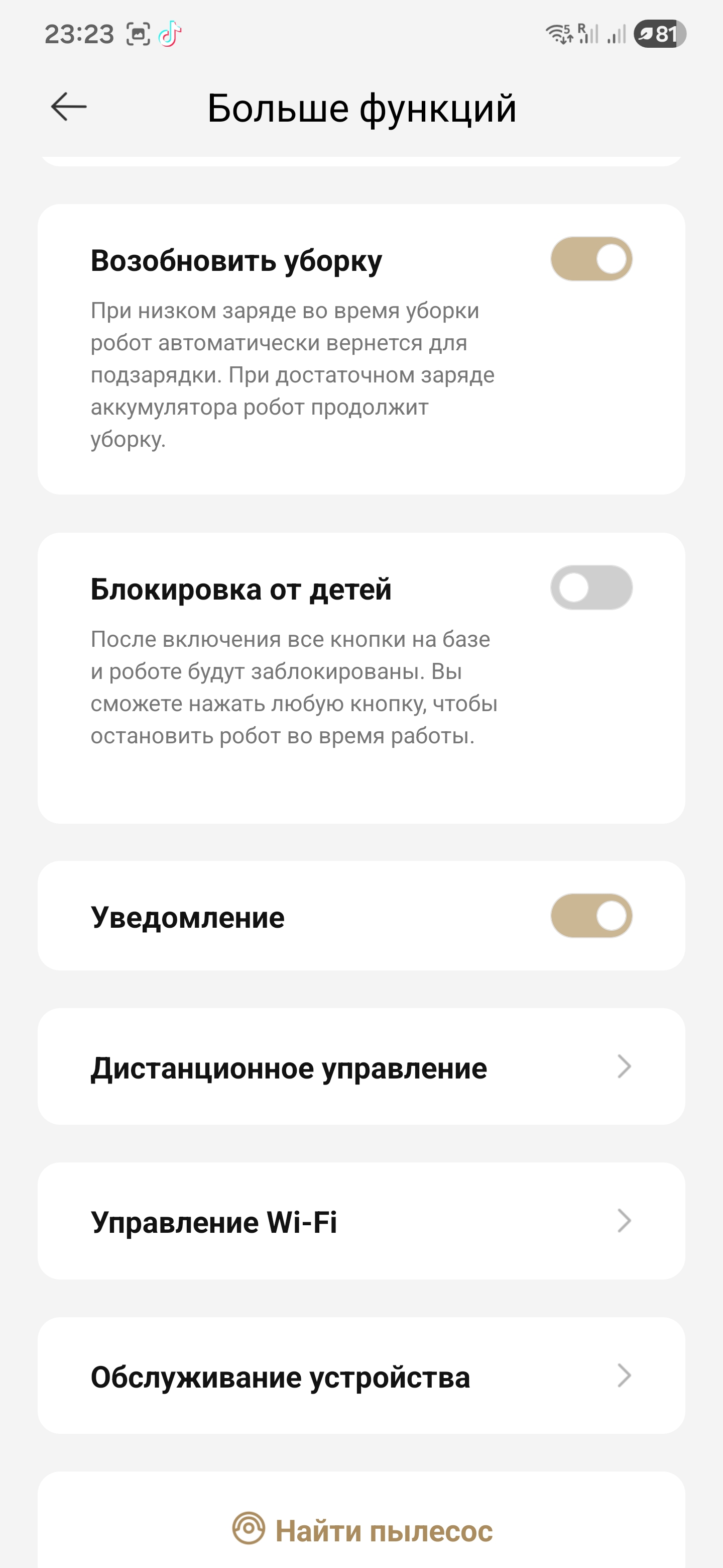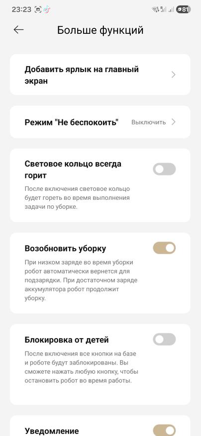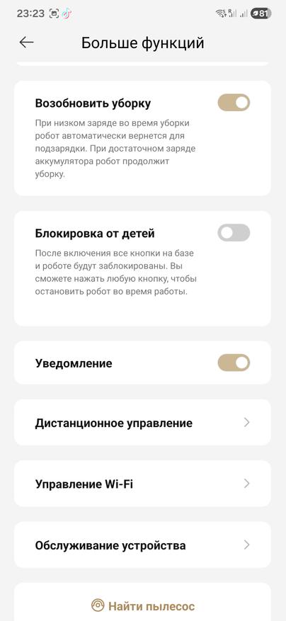 Из любопытного в приложении есть режим поиска домашних питомцев. Включаешь — и робот начинает курсировать по квартире с включенной камерой. Как только в кадре появляется собака, он не делает вид, что ничего не заметил: голосом сообщает, что питомец найден и сразу уходит на базу. Никаких погонь и кружков вокруг хвоста — просто короткая проверка «дома ли пес». Удобно, когда хочешь быстро убедиться, что любимец не заперт в комнате и вообще все под контролем.