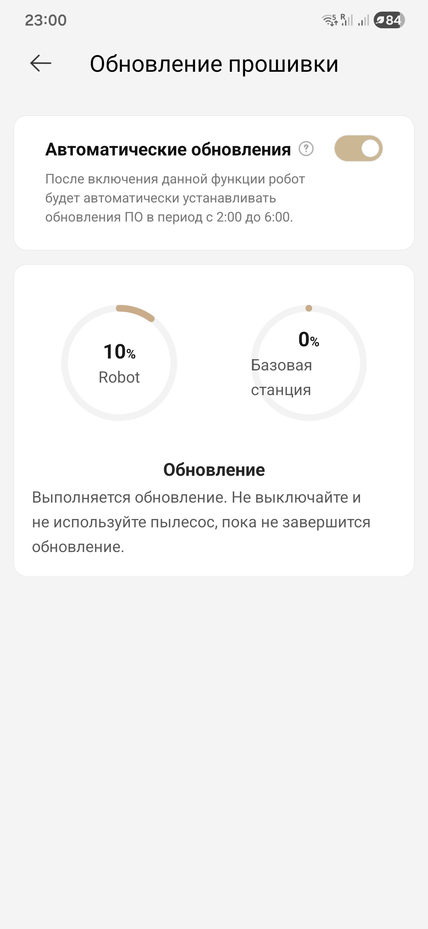 К финалу влажной уборки на индикаторе осталось 37%. Робот вернулся на базу, слил грязную воду, промыл валик, отжал, запустил цикл очистки и тут же встал на зарядку. На экране в приложении — обслуживание пошло, зарядка пошла, можно закрывать смену.