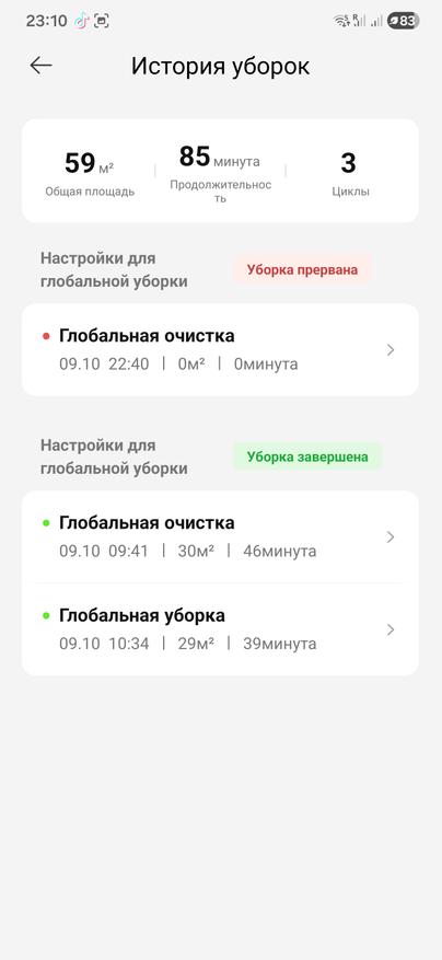 По итогам сухая уборка заняла 51 минуту, влажная уборка 72 минуты.