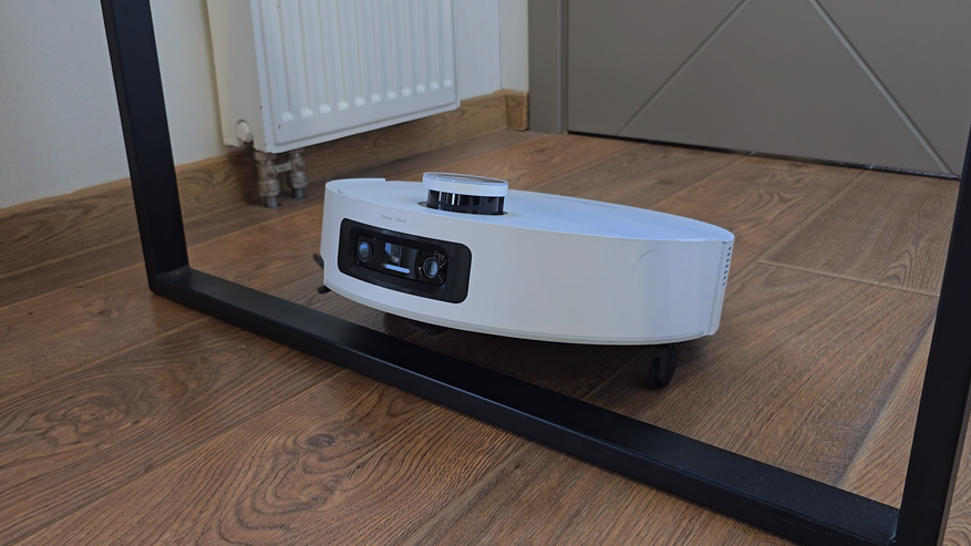 Минимальный зазор под мебелью мерил с диваном. Его просвет как раз около десяти сантиметров. Я включил в настройках максимальный охват для VersaLift. С опущенным лидаром корпус ныряет уверенно, подсветка помогает, карта не «рвется». С поднятым лидаром в тот же просвет уже не идет, останавливается перед кромкой и ищет объезд. В целом логика понятная: где можно — снижает высоту и пролезает, где нельзя — не бодается. Для низких диванов и тумб это спасение, потому что не надо играться с виртуальными стенами; включил профиль и забыл.
