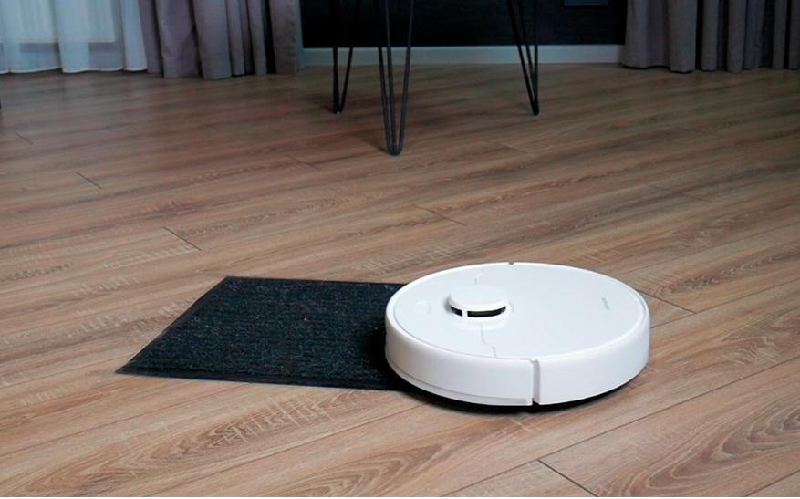 Навигация у этой модели классическая. Робот ориентируется в основном при помощи лидара, обметает предметы, попадающие в зону его видимости, тонкие ножки мебели предпочитает проверять бампером. Сушилку D9 Max Gen2 не видит и пытается переехать через её ножки. Проходимость порогов стандартная — 15-20 мм.
