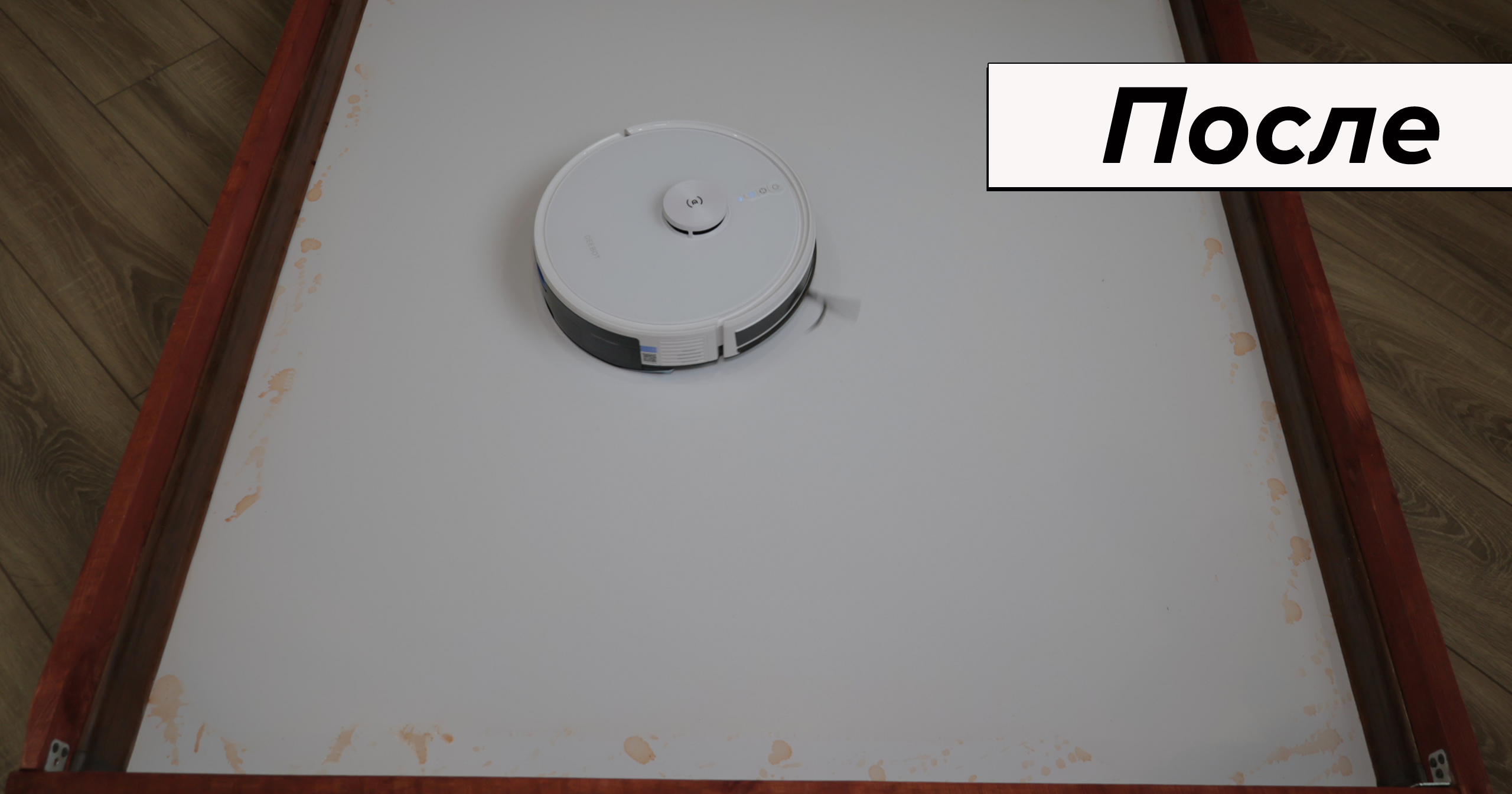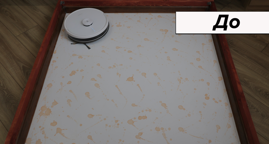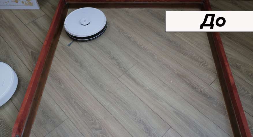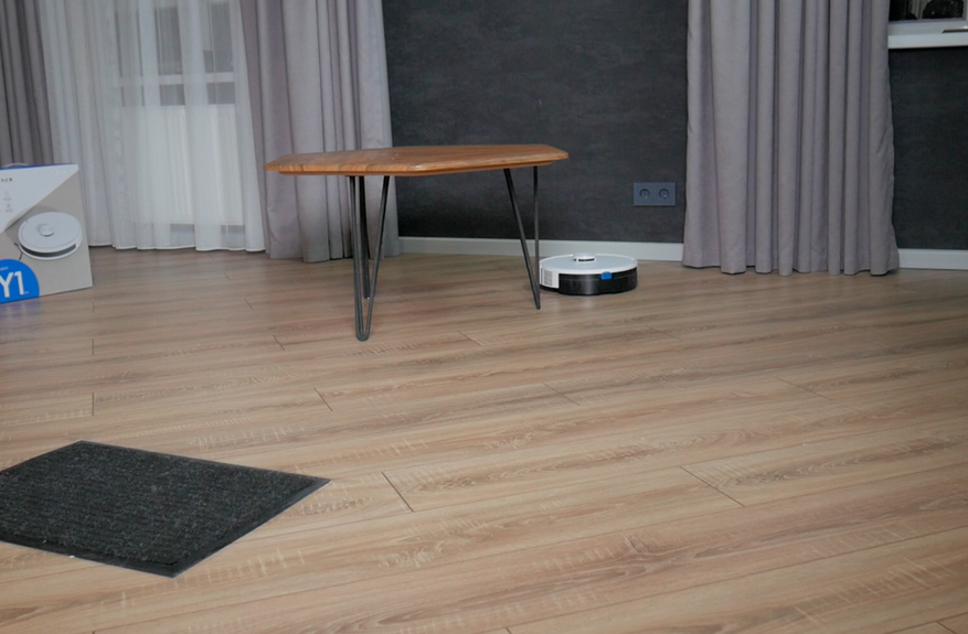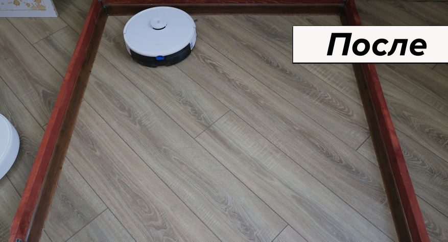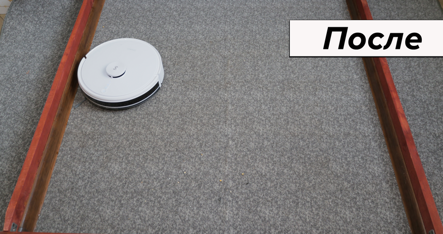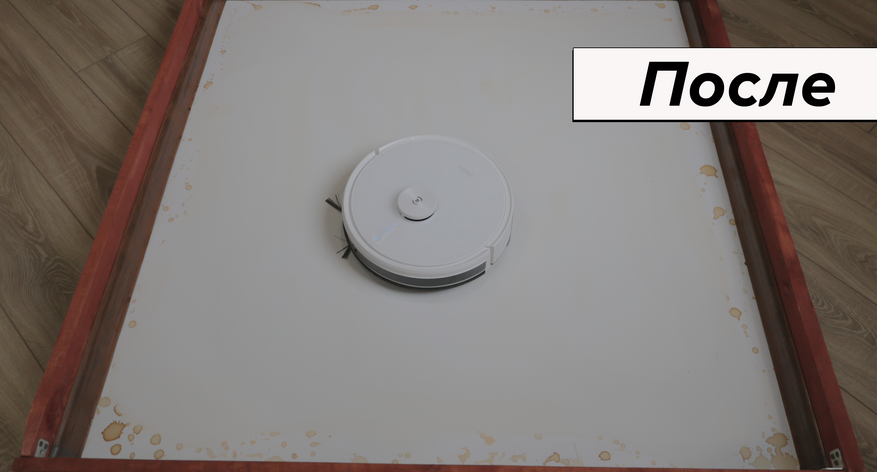 При очевидной простоте влажная уборка качественная. Салфетка сравнительно плотная, хорошо прижимается к полу. В результате пылесос за 4 прохода отмывает кофейные пятна, а если смочить микрофибру в раковине, отмоет ещё быстрее. К примеру, сок убрал с первой же попытки. Даже с земляной грязью Deebot Y1 Pro справляется за 6 проходов. В сегменте до 20 тыс. руб. у него лучшая влажная уборка.