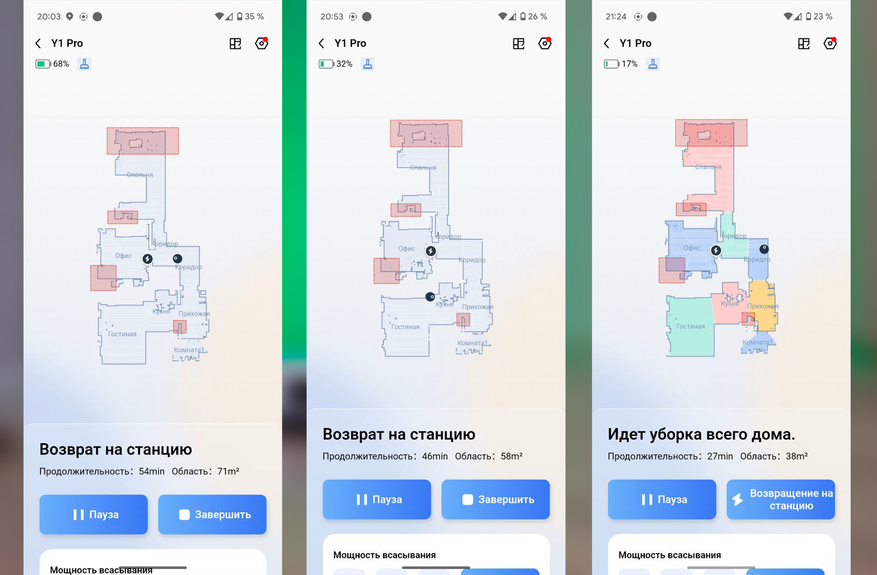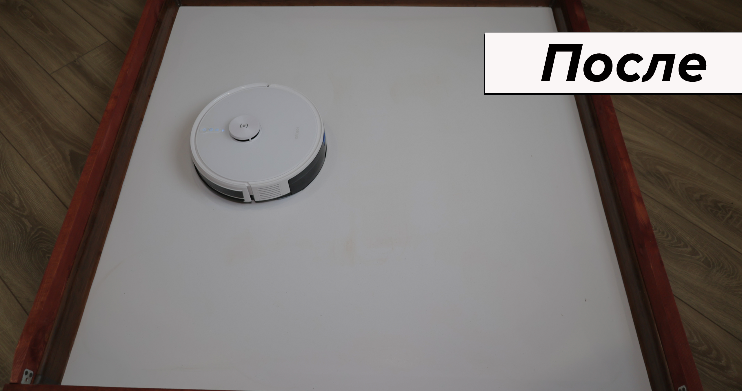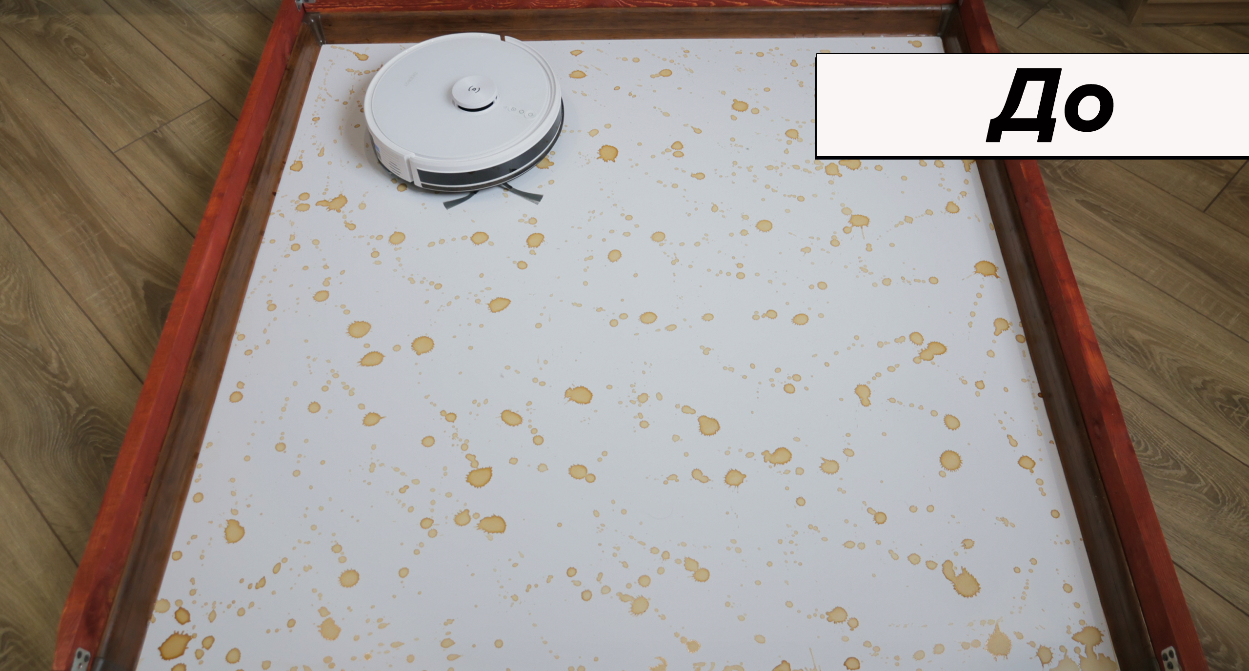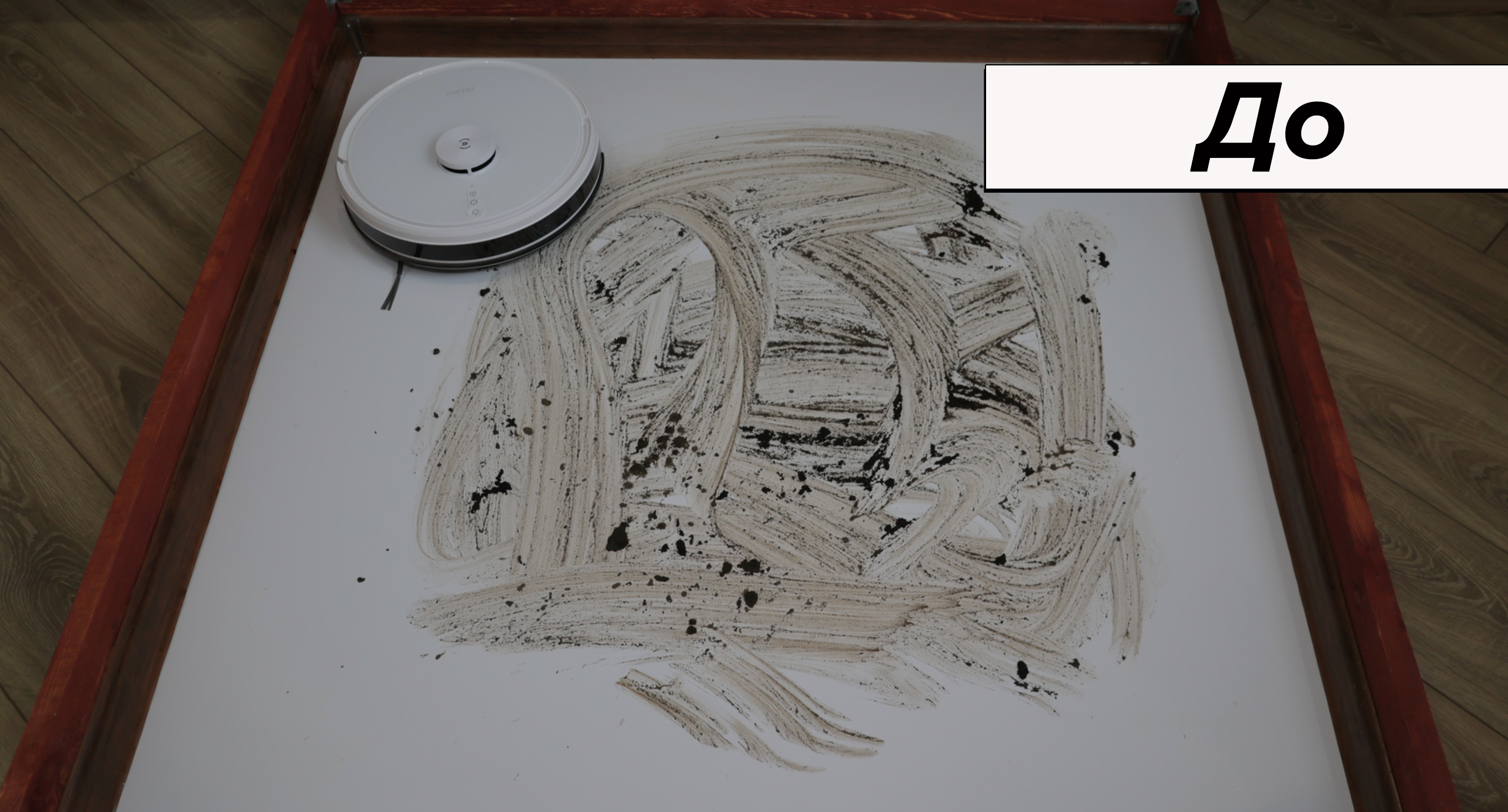 При очевидной простоте влажная уборка качественная. Салфетка сравнительно плотная, хорошо прижимается к полу. В результате пылесос за 4 прохода отмывает кофейные пятна, а если смочить микрофибру в раковине, отмоет ещё быстрее. К примеру, сок убрал с первой же попытки. Даже с земляной грязью Deebot Y1 Pro справляется за 6 проходов. В сегменте до 20 тыс. руб. у него лучшая влажная уборка.