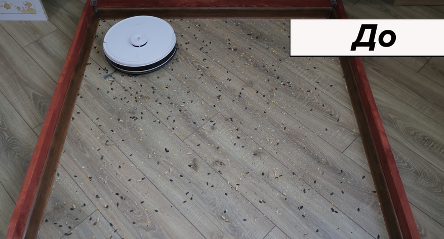 Мощность проверяем щелевым тестом. Вопреки ожиданиям, никаких суперспособностей у Deebot Y1 Pro выявлено не было. Фиксированный раструб не раскрывает потенциал моторчика. В результате пылесос вытянул только 2 мм (точечно) и 4 мм (полосами). В действительности мощность у робота такая же, как у большинства конкурентов.