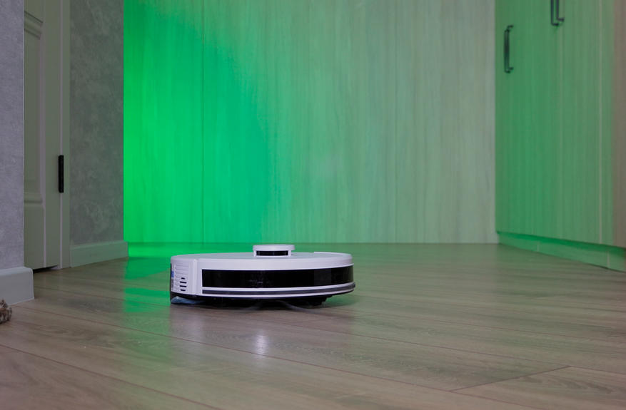 Во время уборки в комнате пылесос один раз проезжает по периметру и змейкой. Расстояние до плинтуса высчитывает с помощью лидара, точность высокая.