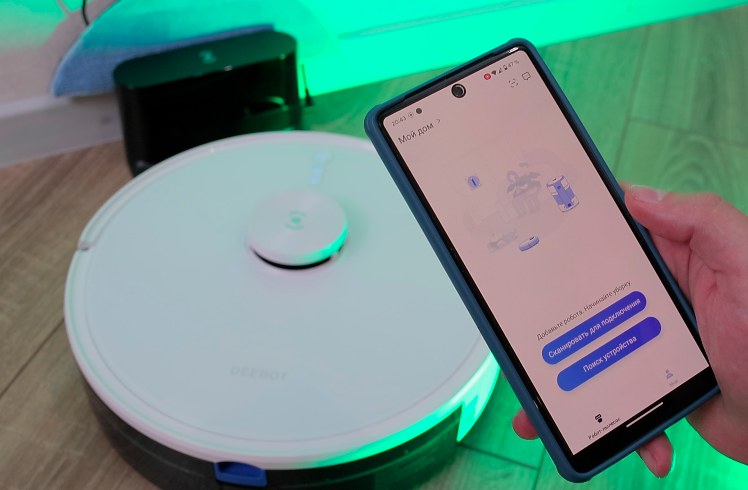 Для управления понадобится фирменное приложение Ecovacs Home. Установка простая, через сканирование QR-кода.